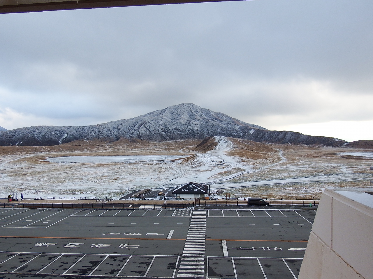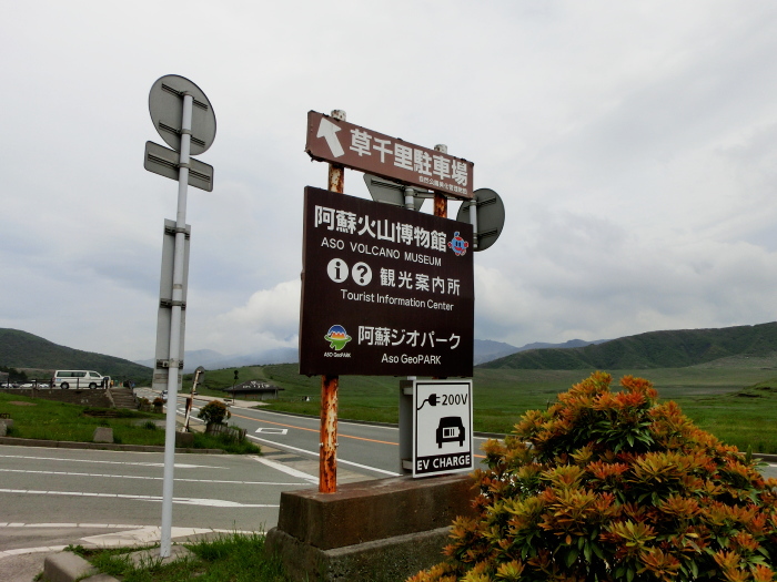 阿蘇火山博物館から草千里、阿蘇中岳を眺める
