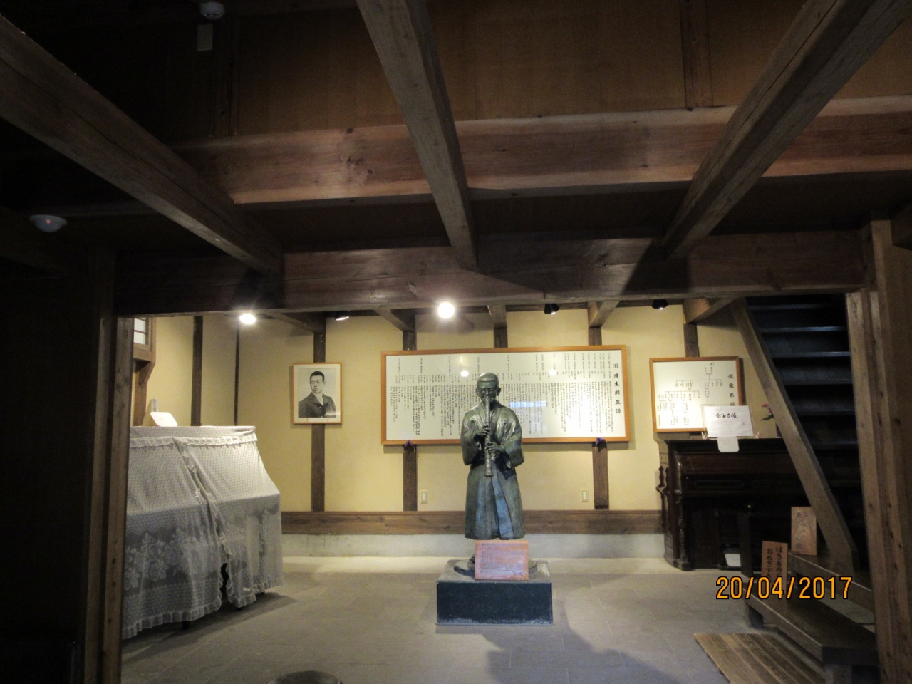 瀧廉太郎記念館は、愛染堂や円通閣などがある八幡山の東側の山裾にありました。この記念館は1992年(平成4年)にオープンした... 続きを読むものですが、12歳の廉太郎が父の転勤に伴い1891年(明治24年)12月に竹田に転居してから、2年半ほど過ごしたところです。元々は岡藩家臣の岩瀬家の屋敷で、敷地が300坪もある大きな侍屋敷だったそうで、現在まで、その一部が残ったということです。館内に尺八を吹く廉太郎少年像がありました。朝倉文夫さん作の廉太郎像は多く見掛けますが、これは初めて見ました。尺八は廉太郎が竹田で初めて手にしたものの1つで、後の作曲(音律)に影響を与えているそうです。 閉じる