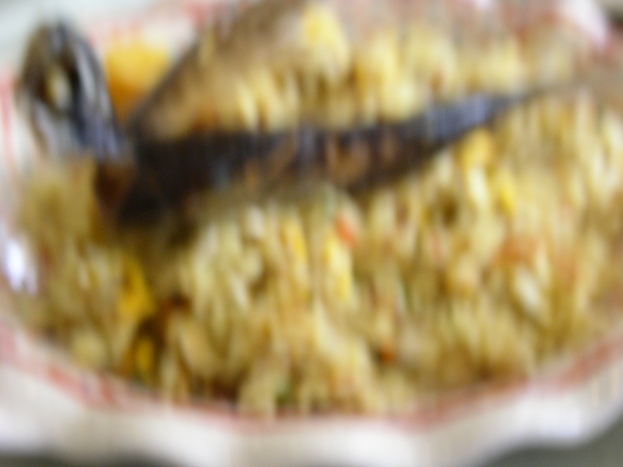 出てきたのは、ピラフの上に魚のフライがのっかったもの。