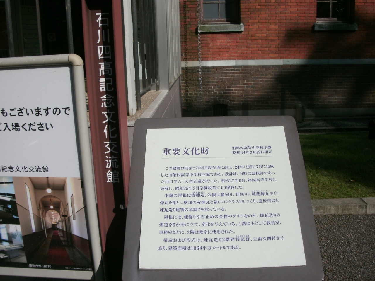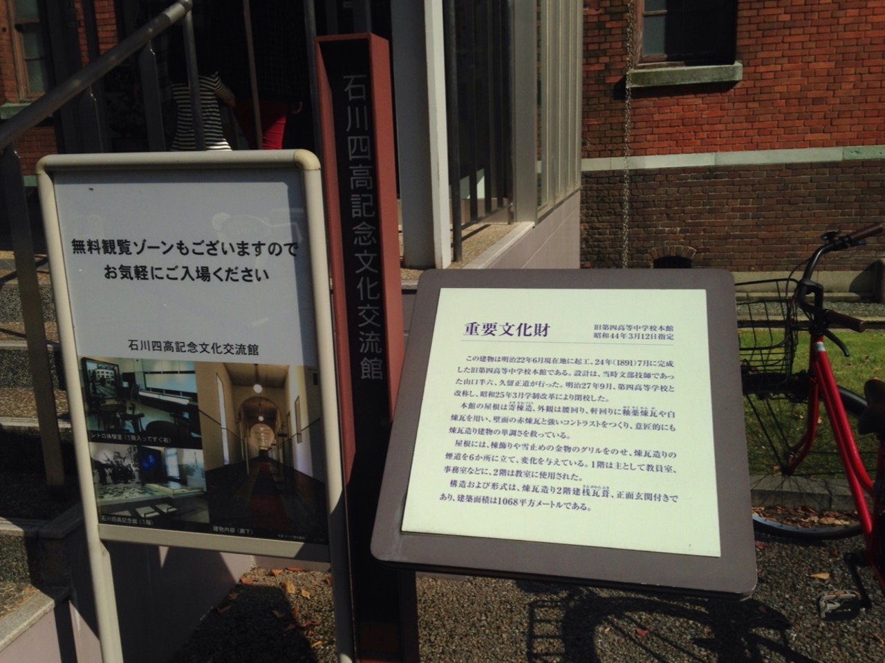 石川四高記念文化交流館は、赤煉瓦造りの2階建て。明治24年に建てられた旧第四高等中学校本館建物で、その後、金沢大学理学部や... 続きを読む金沢地方裁判所としても使われた国の重要文化財。今は、西側が四高記念館、東側が有料の石川近代文学館となっています。ただ、四高記念館の方はコロナ禍以降、お休みとなっていました。 閉じる