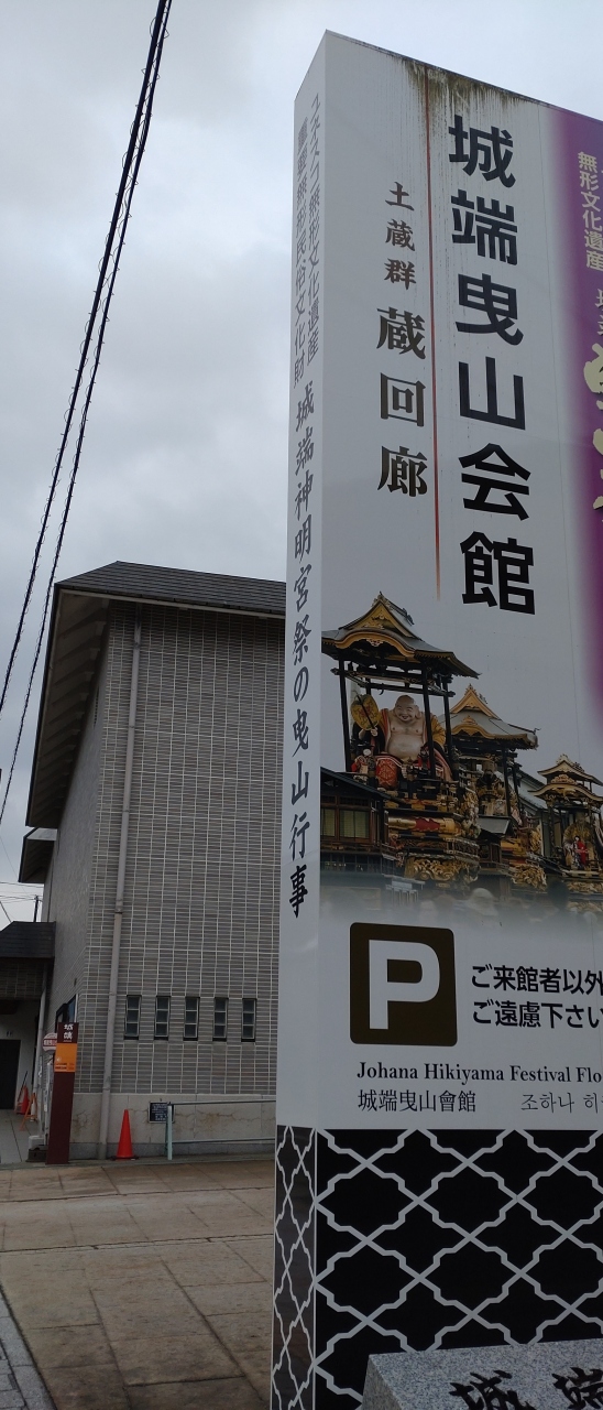 曳山祭に使われる傘鉾、庵屋台、曳山を展示してる施設ですが、この日はお祭りで中は空っぽ。
