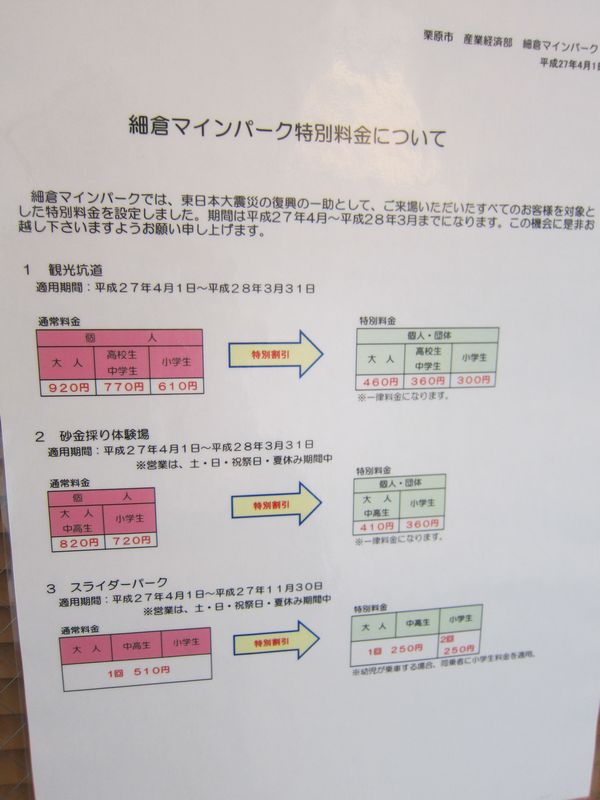 27年4月~28年3月まで料金半額~細倉マインパーク!