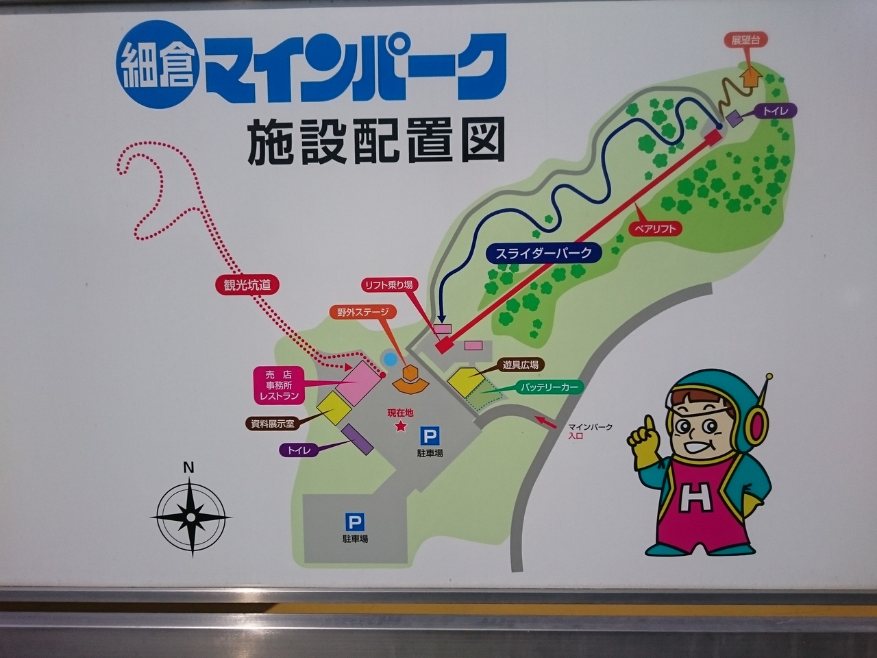 傍へ行ったりボタンを押したりすると、ここのキャラクター・マイン坊やが解説してくれます(マイン坊やじゃなく、パネルのところも)。