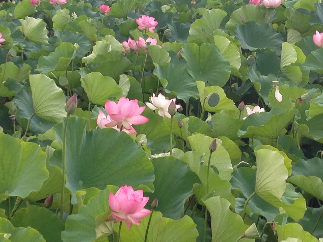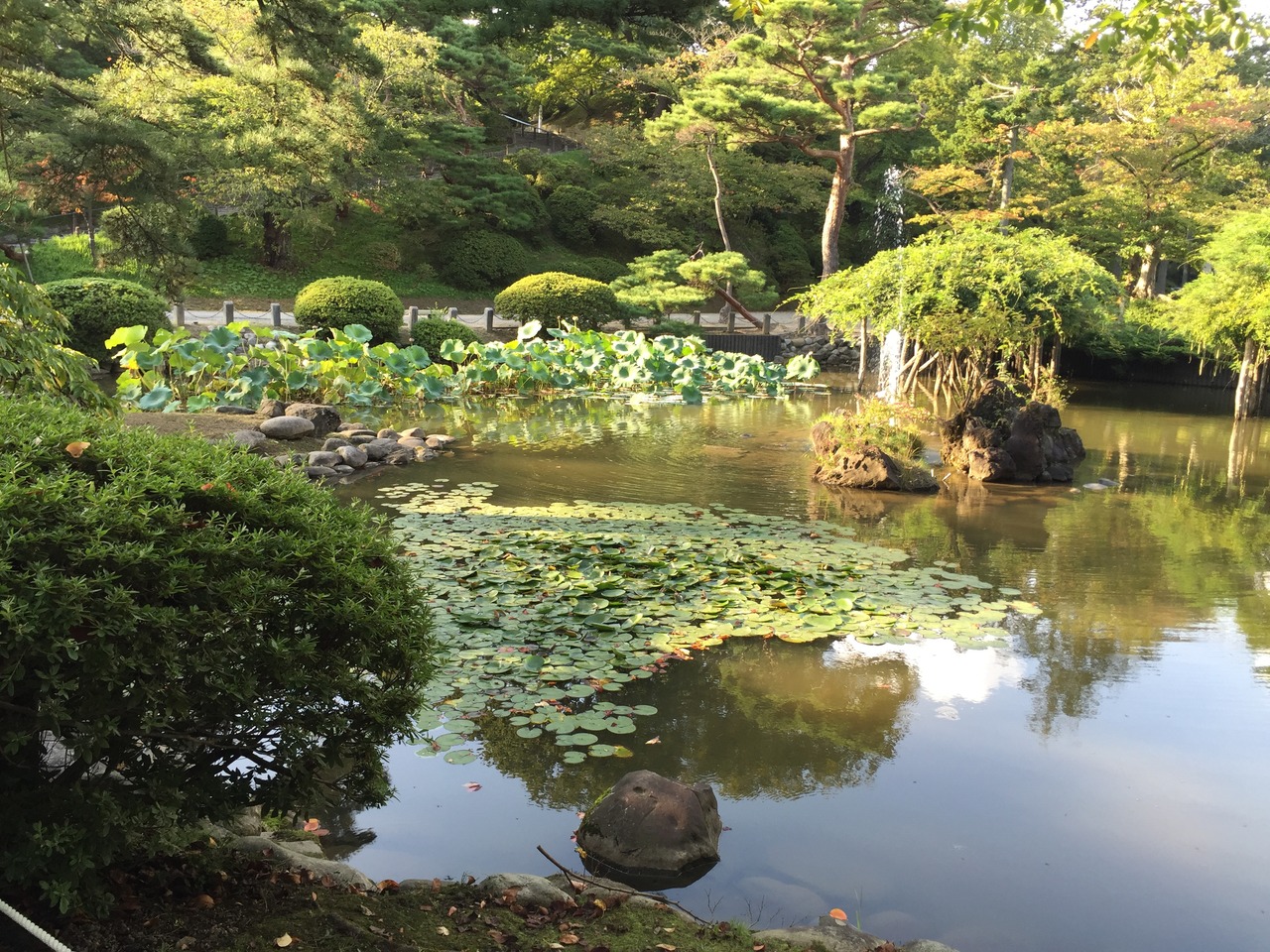 泊まっていた秋田駅前のホテルから秋田市民俗芸能伝承館へ向けて朝の散歩。その途中に久保田城祉を中心とした千秋公園を歩く。お濠... 続きを読むには蓮の花が咲いていて、その中にフロート式の遊歩道が設置されていて蓮の畑の中を歩いていくような不思議な感覚。おかげで蓮の花を間近に観察することもできて、朝の散歩が充実したものになった。 閉じる