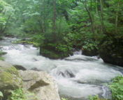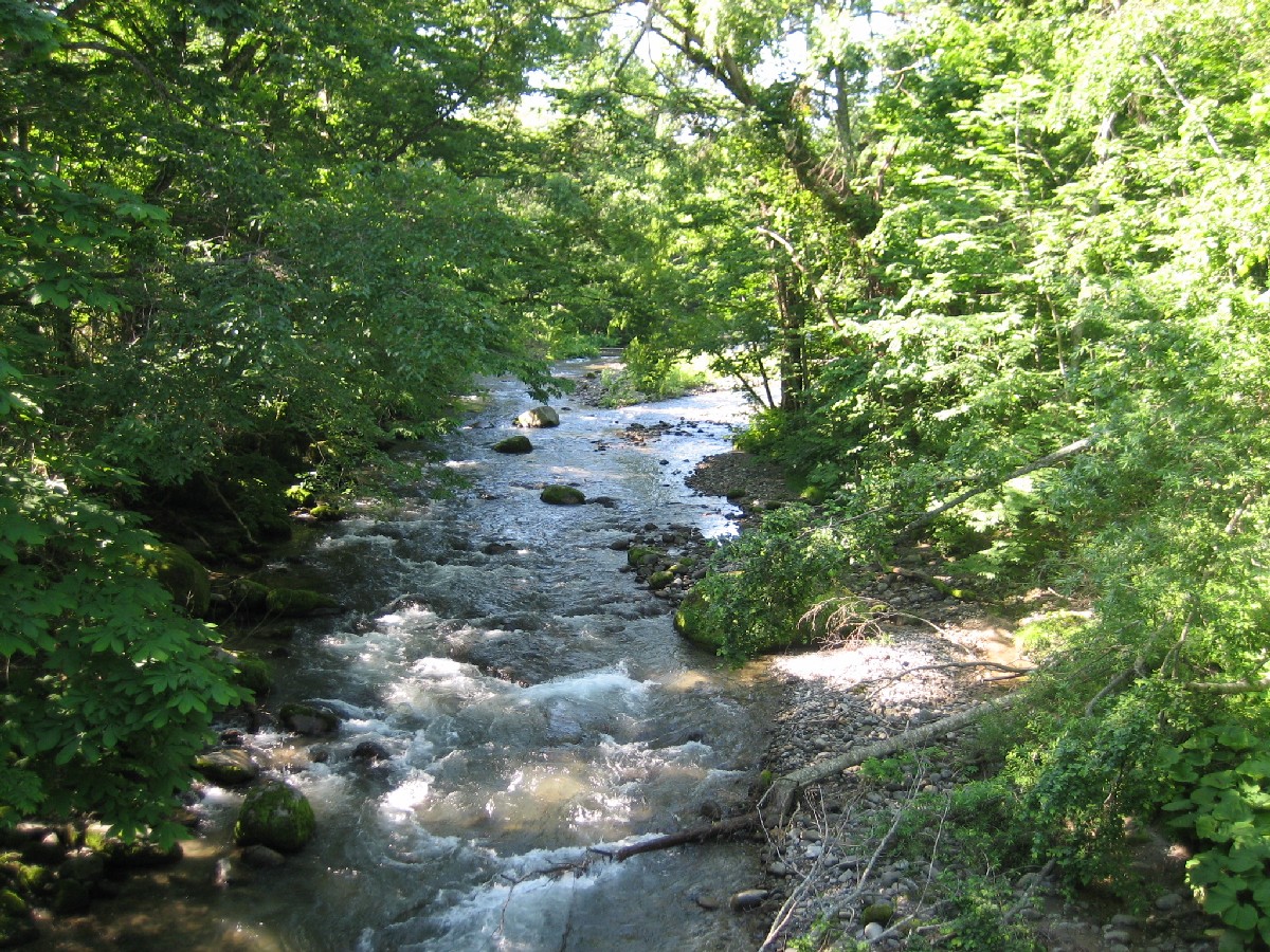 マイナスイオンを一杯浴びて清流沿いを歩く