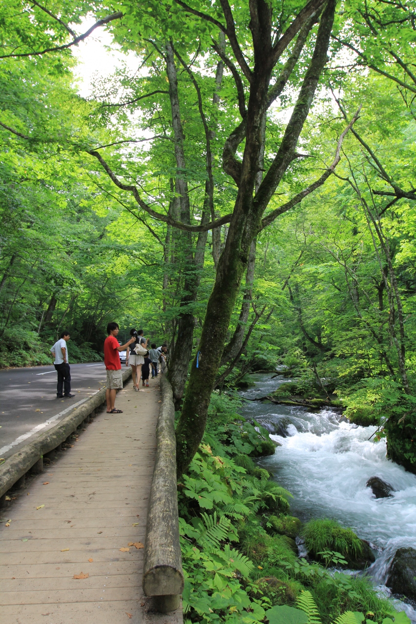 奥入瀬渓流は歩いて見学するのがおススメです。