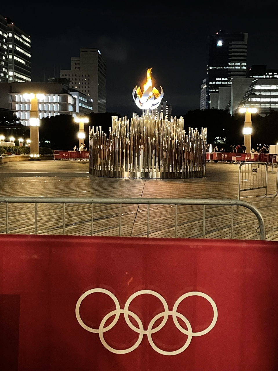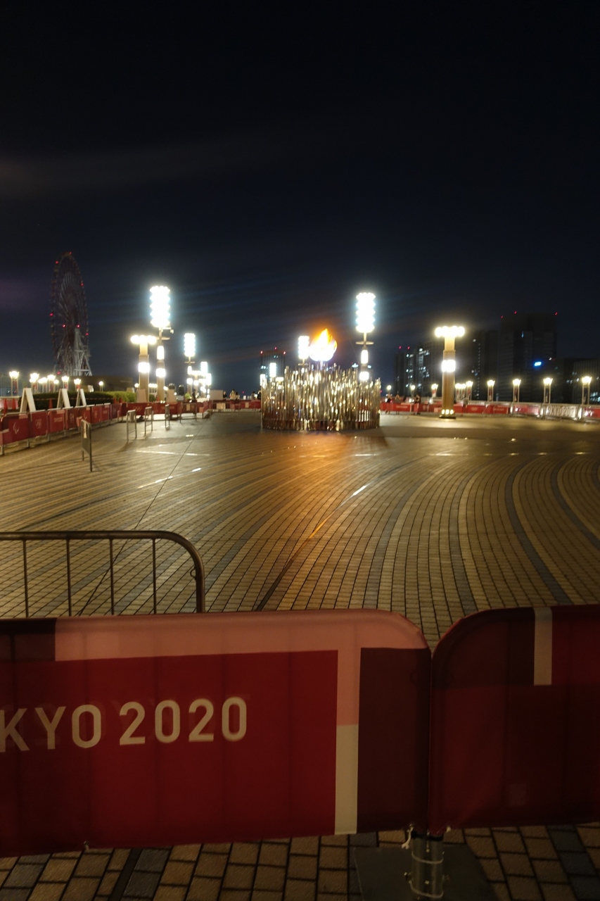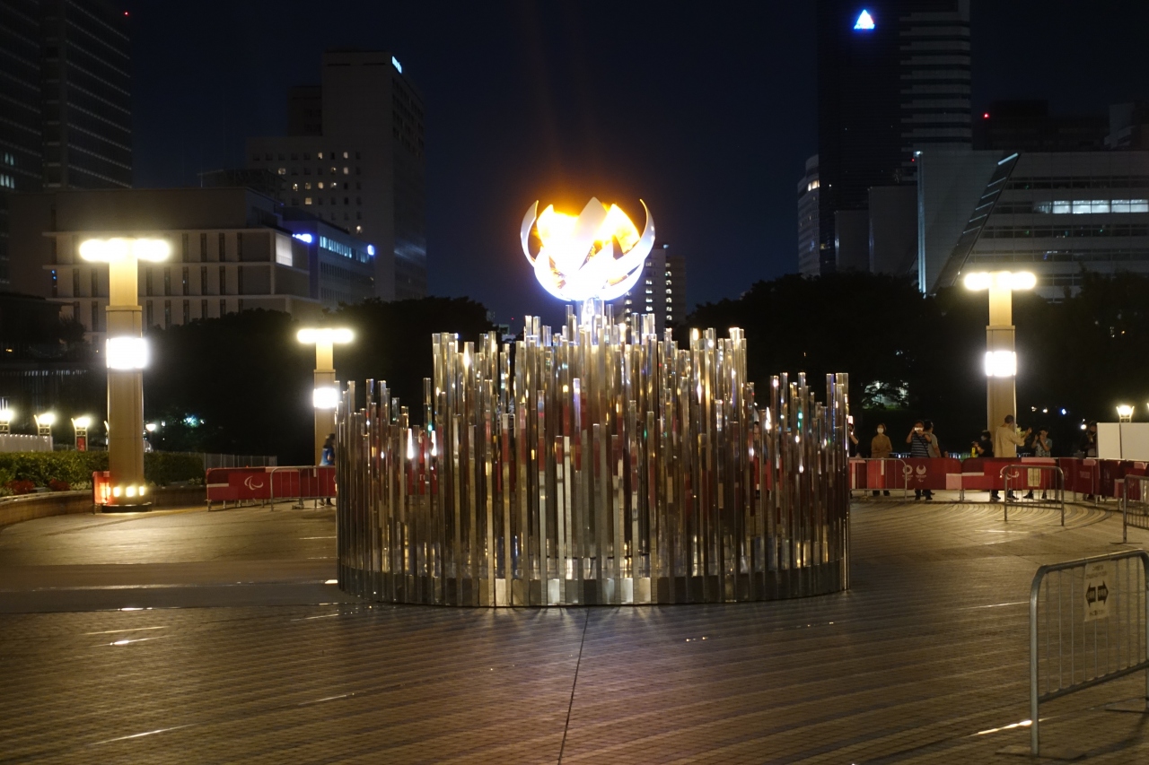 今回は少しでも五輪の雰囲気を味わおうと聖火台を見に行きました。