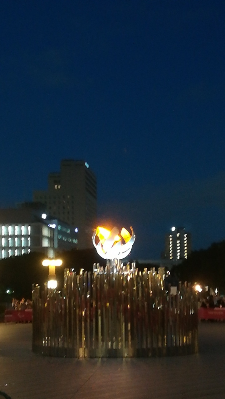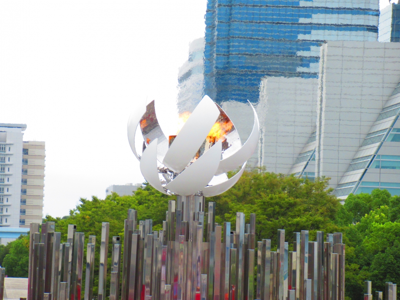 聖火台は開会式で使用されたものと同じ形ですが、大きさは直径約1.2メートルで、3分の1のサイズということで、小さかったです。