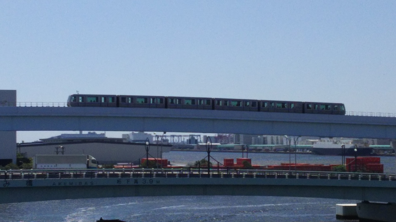 ちょうどビックサイトとヴィーナスフォートの間をつな... 続きを読むいでいる「ゆりかもめ」と 並走するかんじにかけられている 大きな橋です。