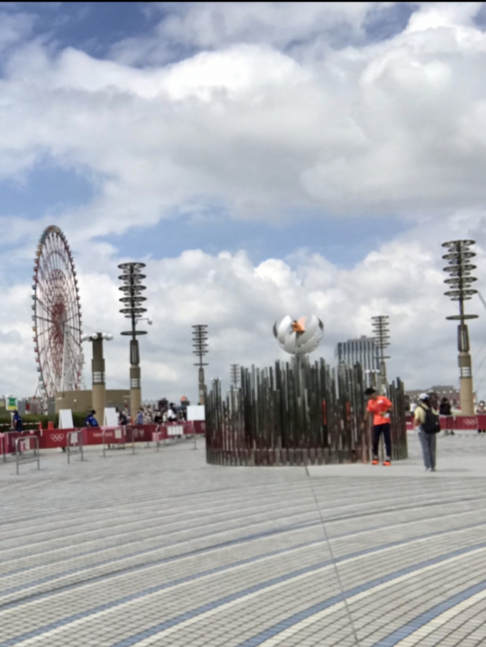ちょうど有明から渡り始めてすぐのところに、聖火台が設置されていました。
