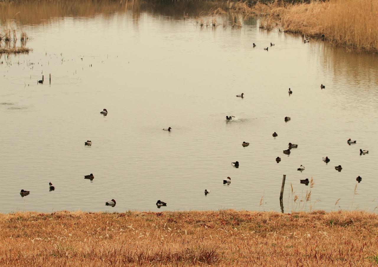 ネイチャーセンターの前には、1年中サギやカワウなどの大きくてあまり動かない鳥がいるので、初心者でも見つけやすくていいです。また、春と秋にはシギ・チドリ、夏にはコアジサシのダイビング、冬にはカモ類とそれを狙う猛禽などが比較的カンタンに見られます。