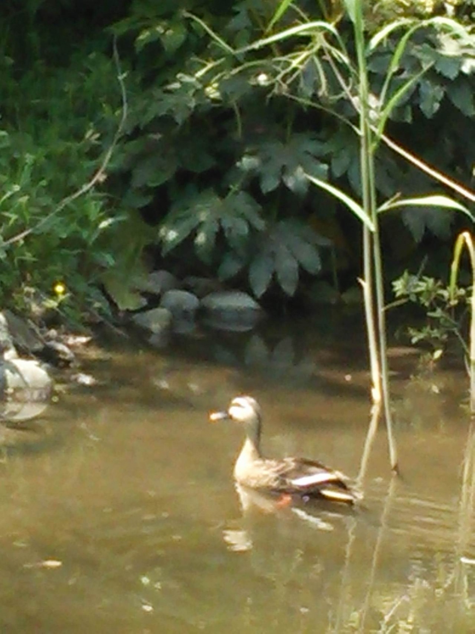 最初は東側の池の一番近くから見ており、草陰に隠れてしまい2羽しか見えませんでしたが、観察所からだと、少し遠いですが4羽見ることが出来ました。水の中をちょこちょこ歩いていて、いつまで見ていても飽きません。1羽は割とじっと座っていることも多く、あとから生まれた雛なのかもしれません。無事に育ちますように!