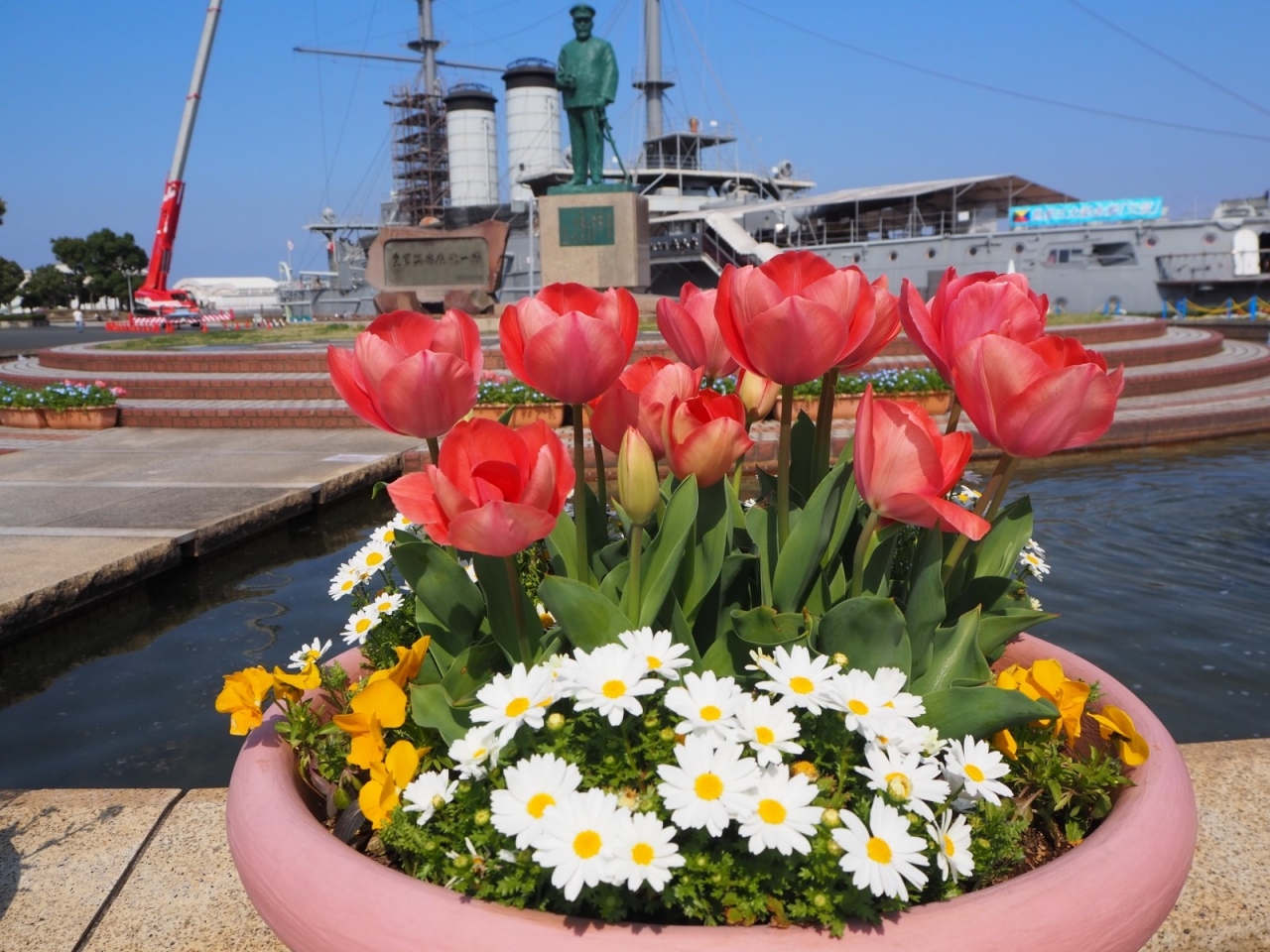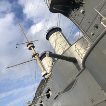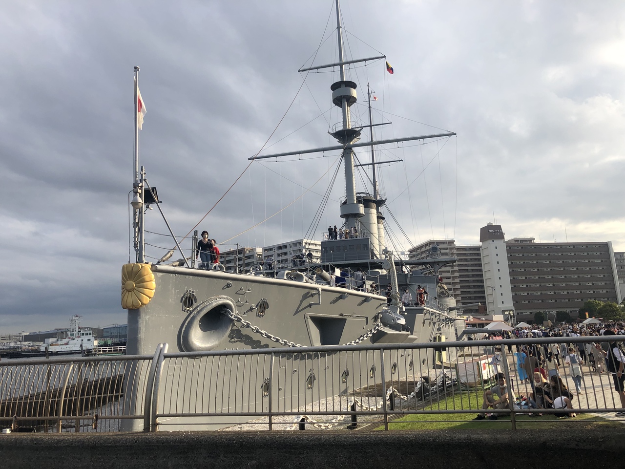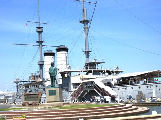 記念艦三笠は、日露戦争の際の連合艦隊の旗艦で、東郷平八郎司令長官が乗船していたことでも有名です。