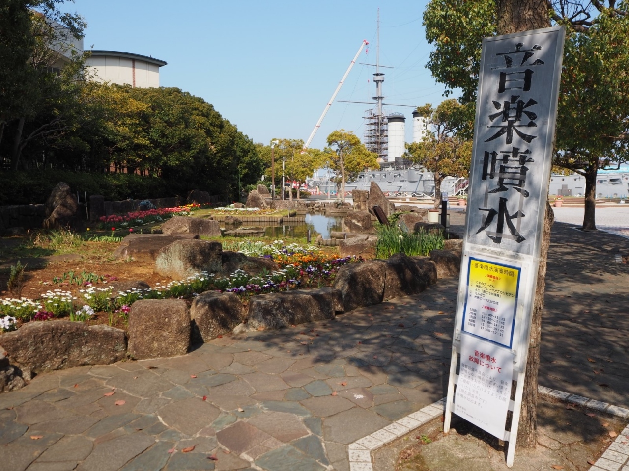記念艦三笠のある海辺の公園、東郷平八郎像や音楽噴水も