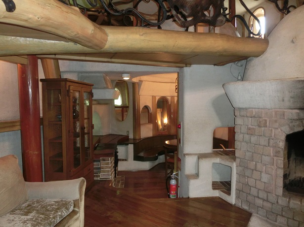 中にはキッチンやリビング、暖炉やベンチなどがあり、
