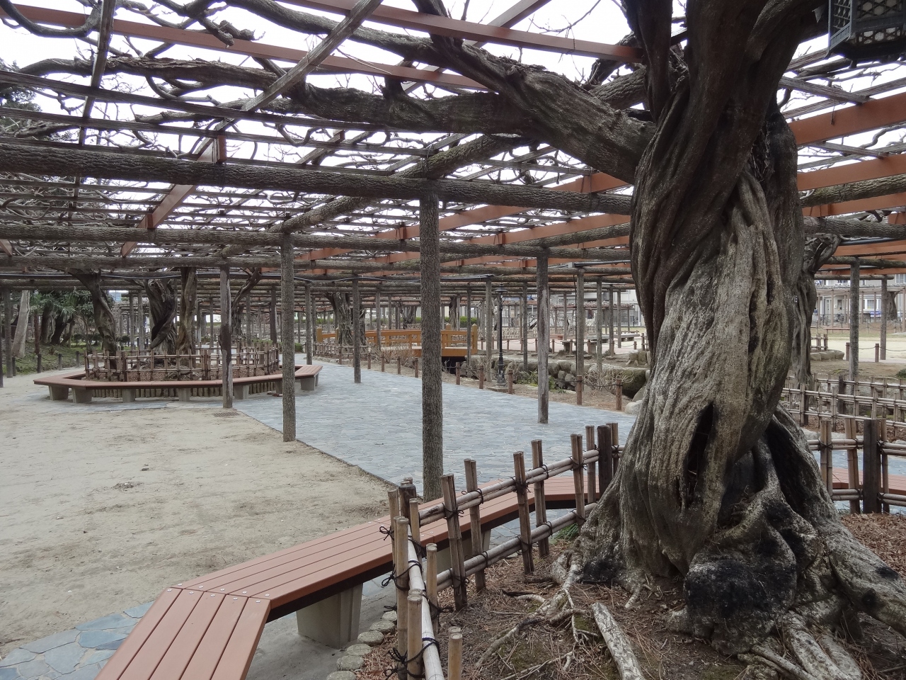 津島市に用事があり、観光スポットとしてこの公園を初めて訪れました。大きな池の中に中ノ島と浮島があり、いい景色を造っていまし... 続きを読むた。カモなどの野鳥が水面を泳いでいてバードウォッチングにも向いているようでした。小さいお子さんでも遊べる遊具が充実していて、子連れのファミリーに楽しめるよあのはう工夫されていました。圧巻なのは、日本で一番と言われる藤棚です。水路の両側に確実に300mを超える藤棚が延々と延びていました。藤の花が咲く4月下旬には、かなり混雑するものと予想されます。まきわら船をかたどった街路灯や、水路の上流に休憩所のような建物がいくつかあるのもいい雰囲気を出していました。