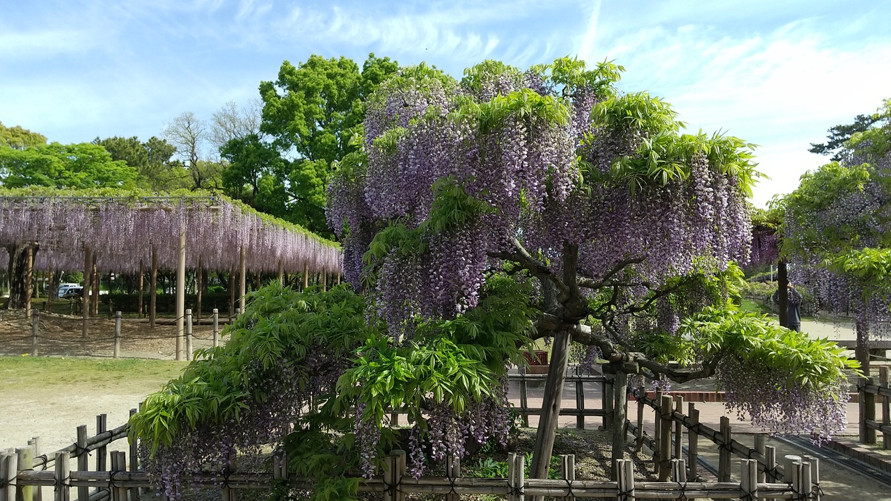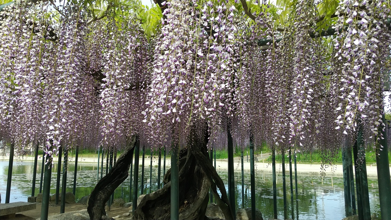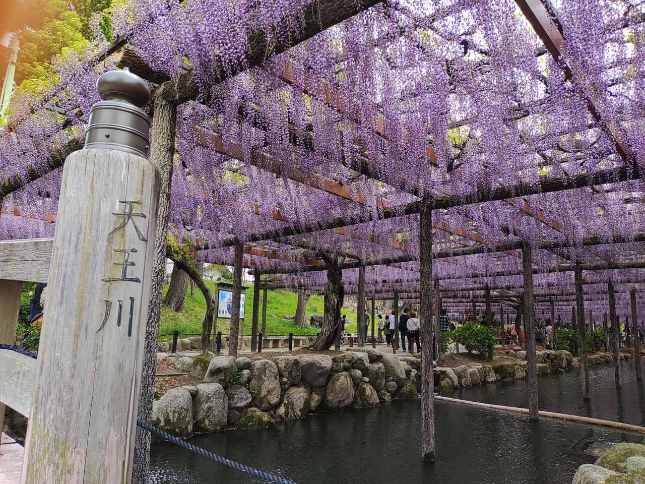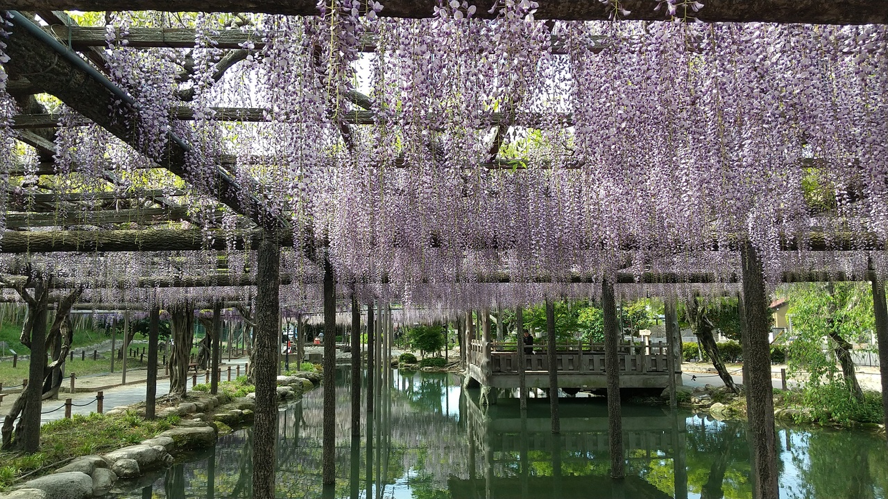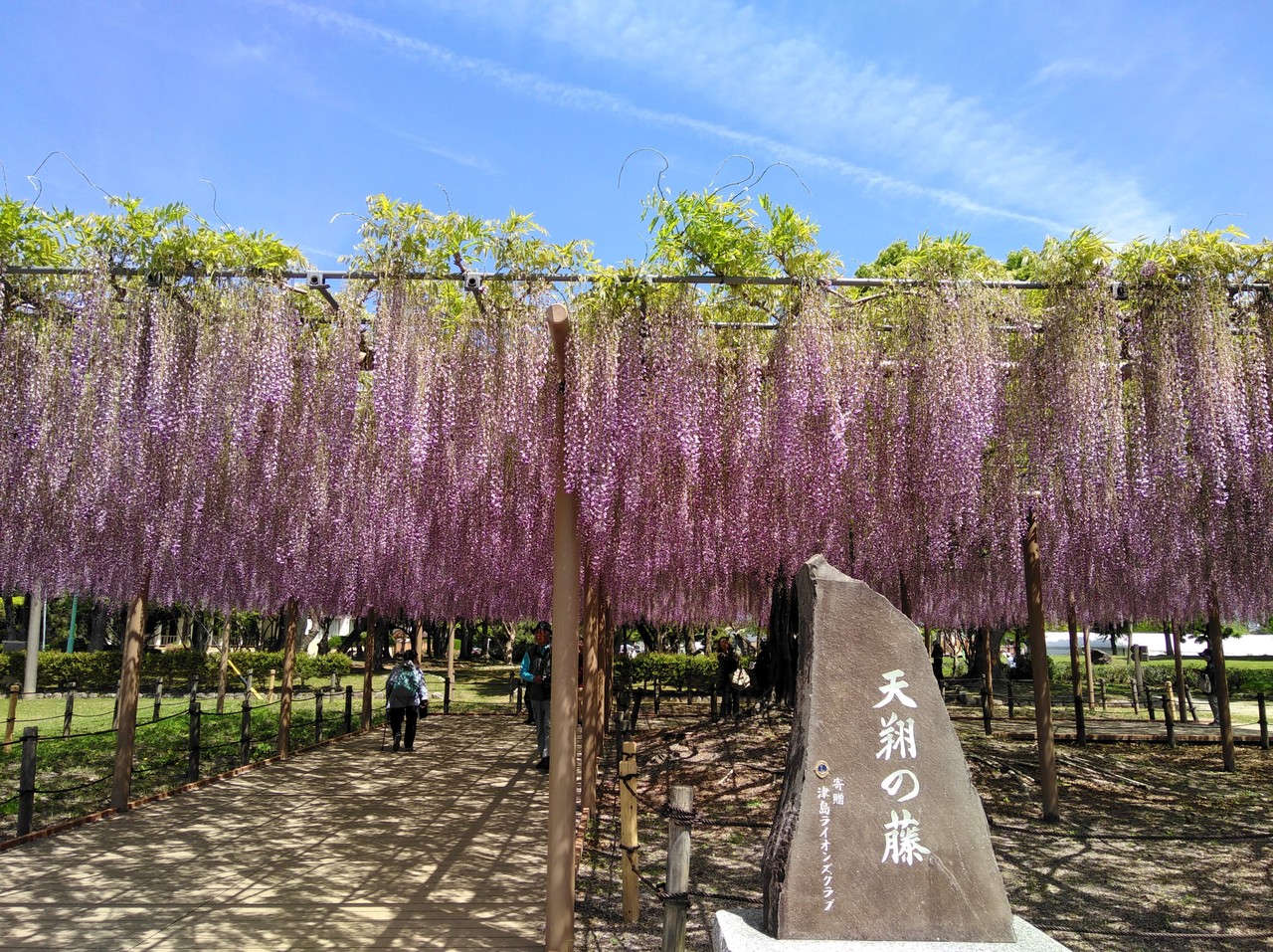 桜、藤、睡蓮などで名高い天王川公園、ゴールデンウィークに藤の花を観賞した