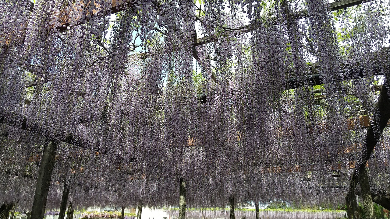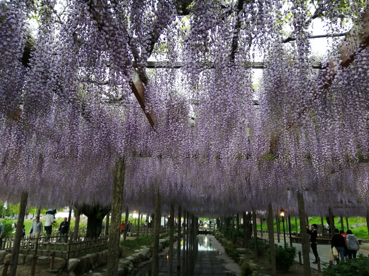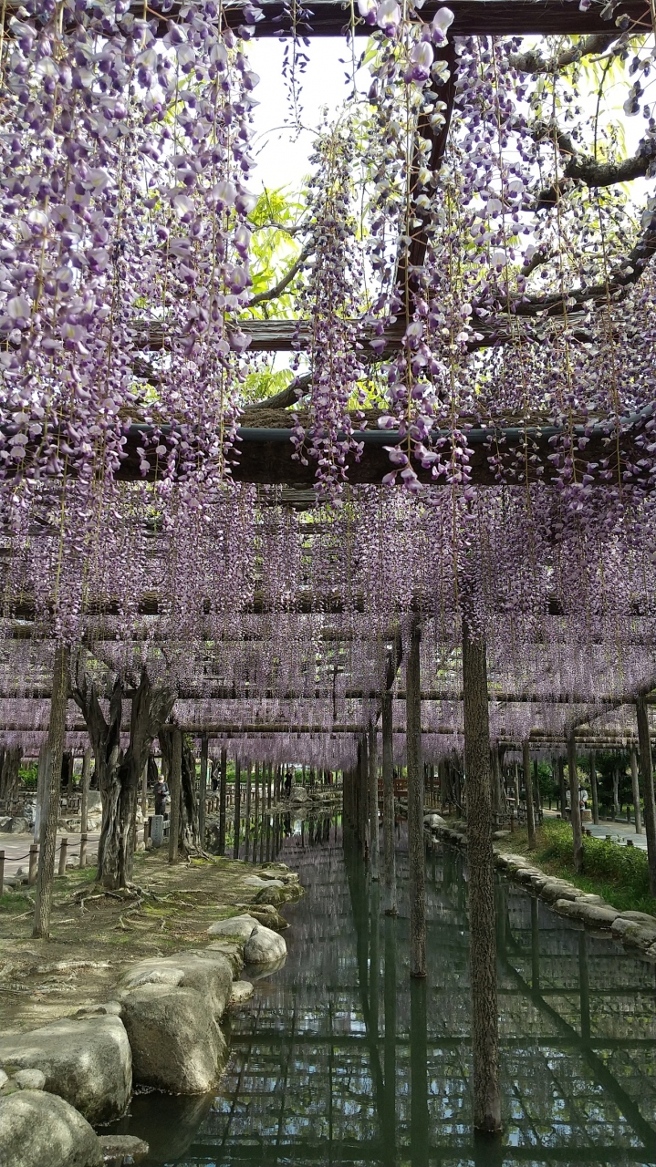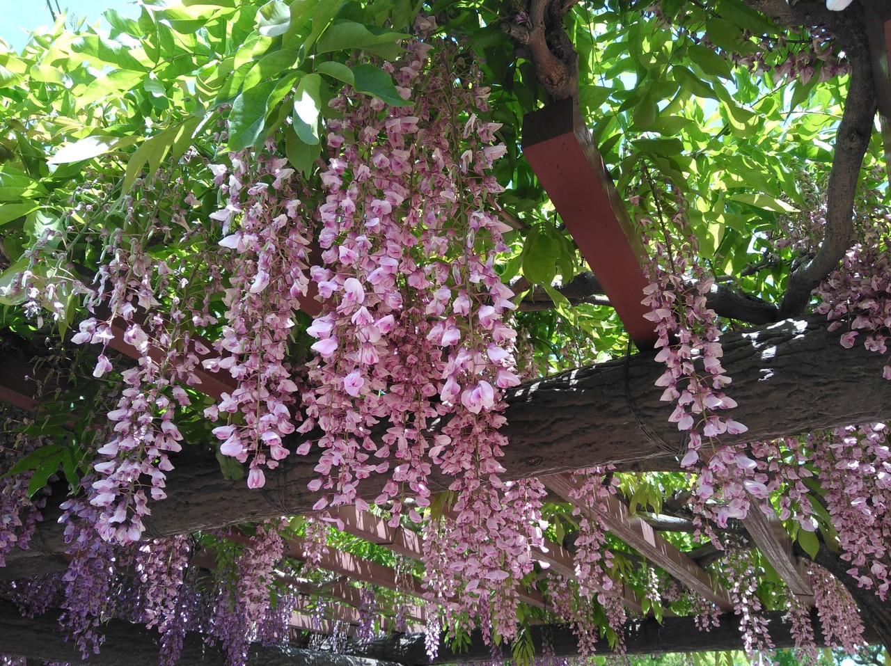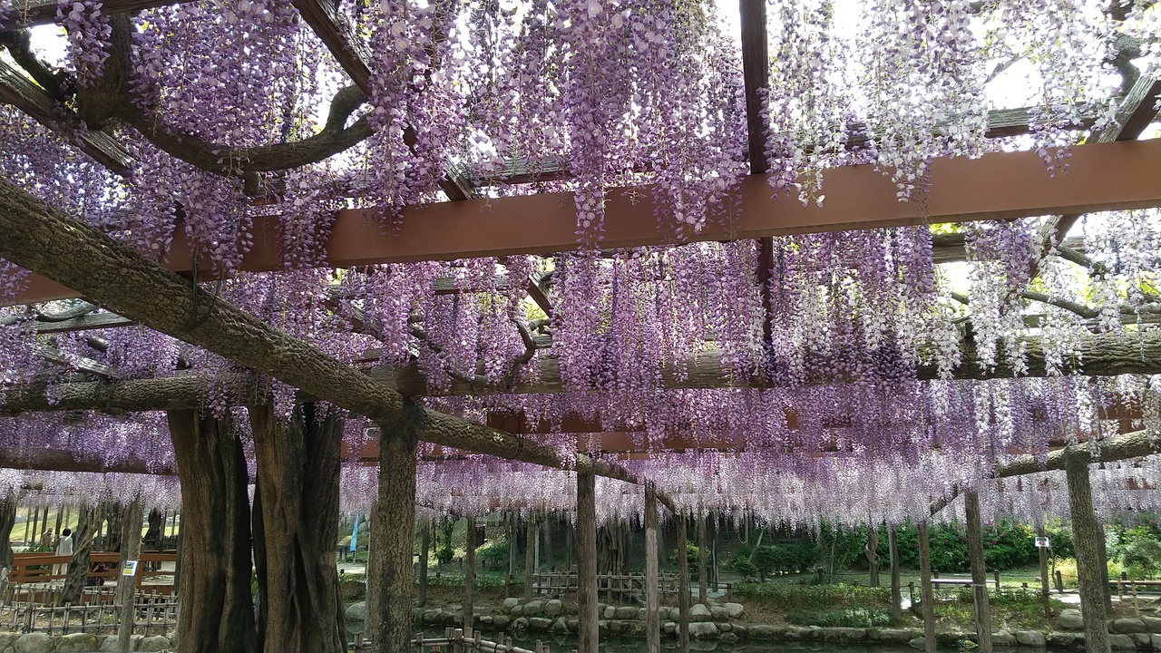 桜、藤、睡蓮などで名高い天王川公園、ゴールデンウィークに藤の花を観賞した