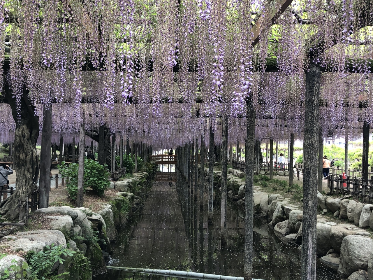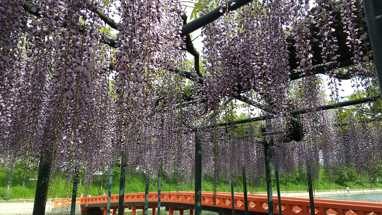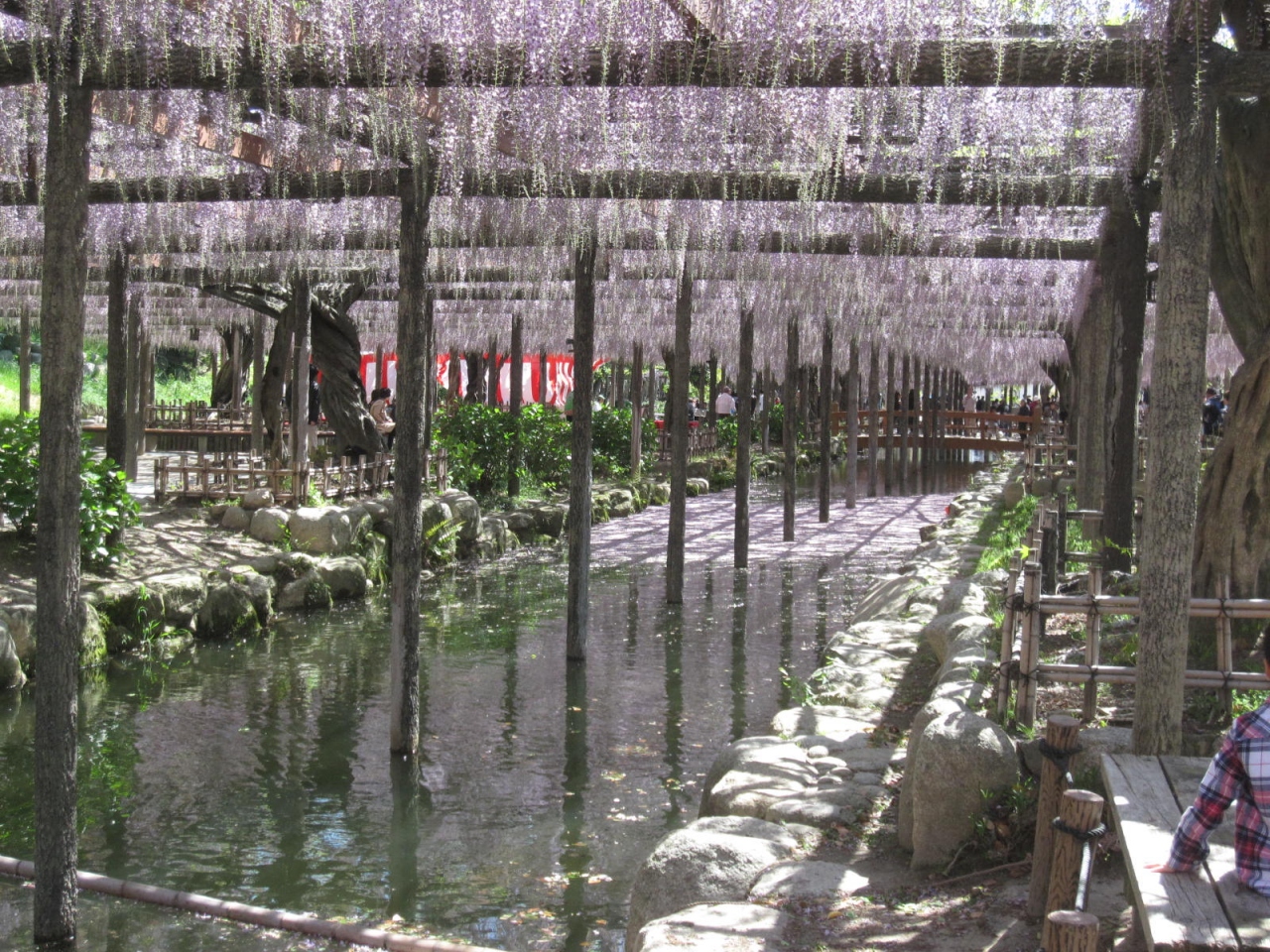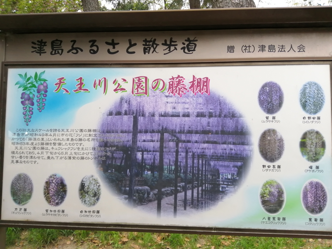 桜、藤、睡蓮などで名高い天王川公園、ゴールデンウィークに藤の花を観賞した
