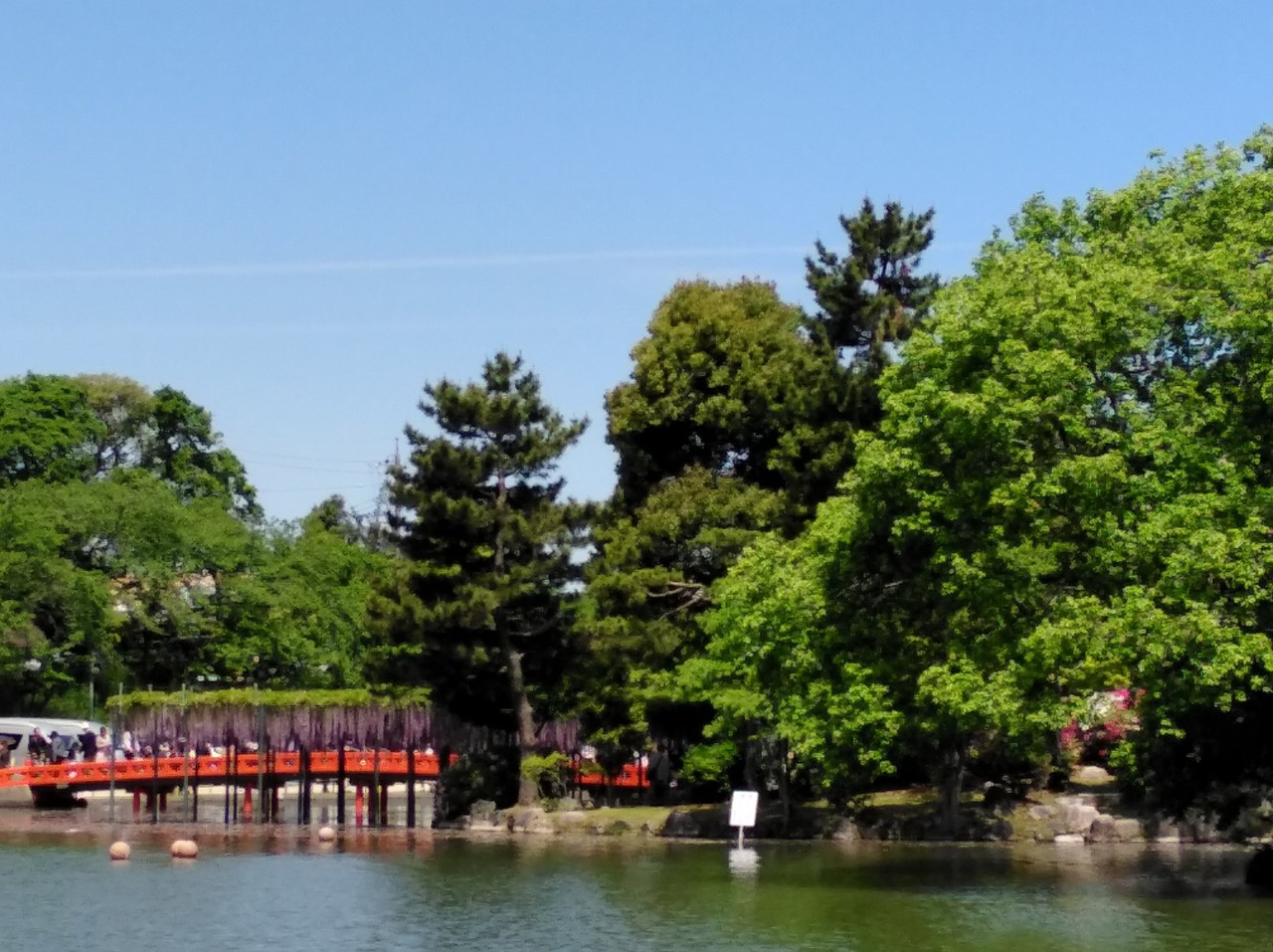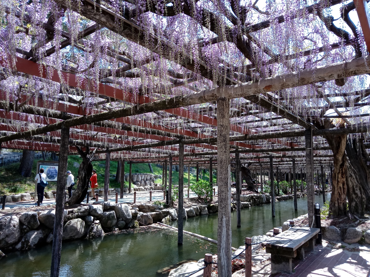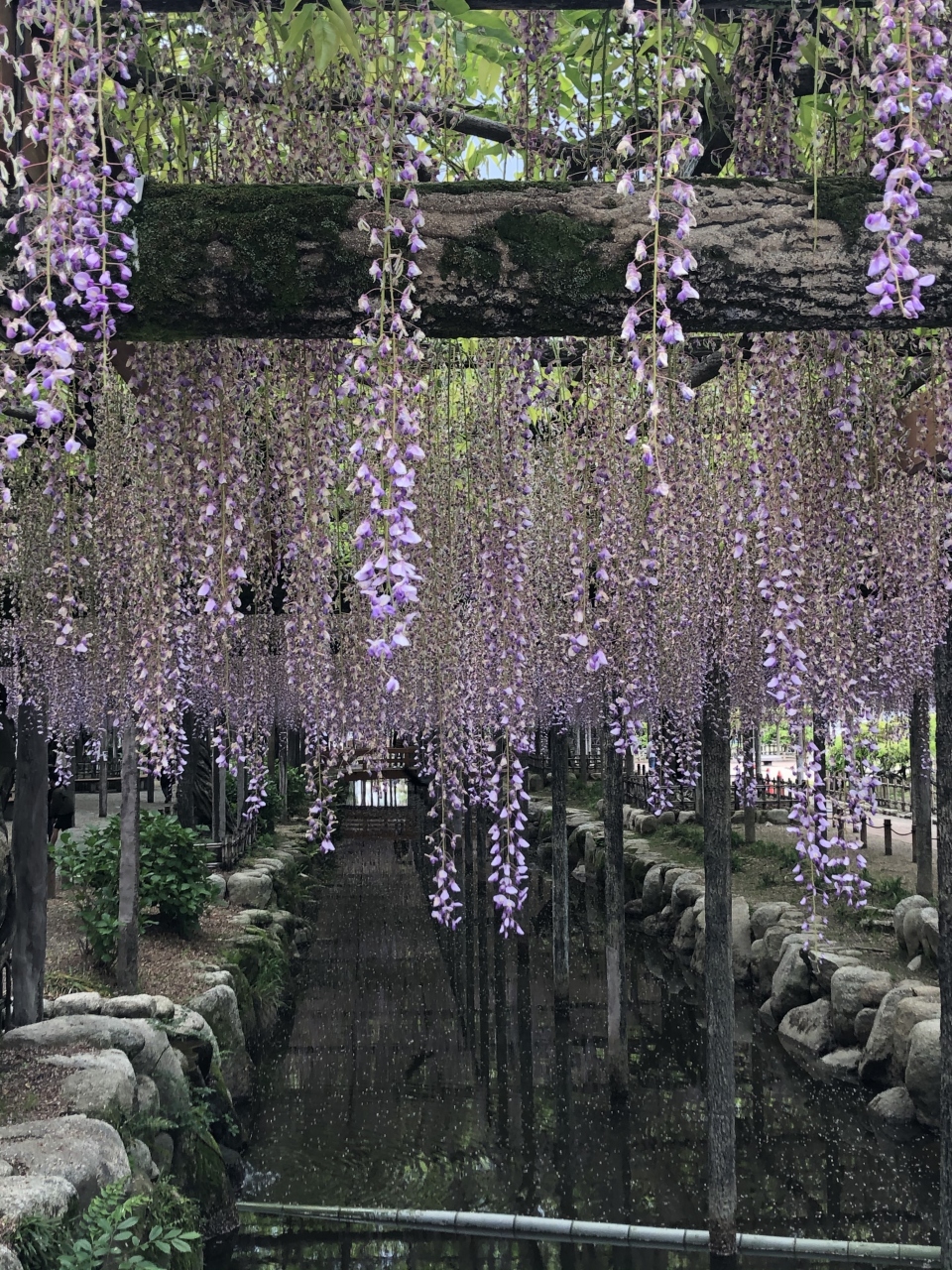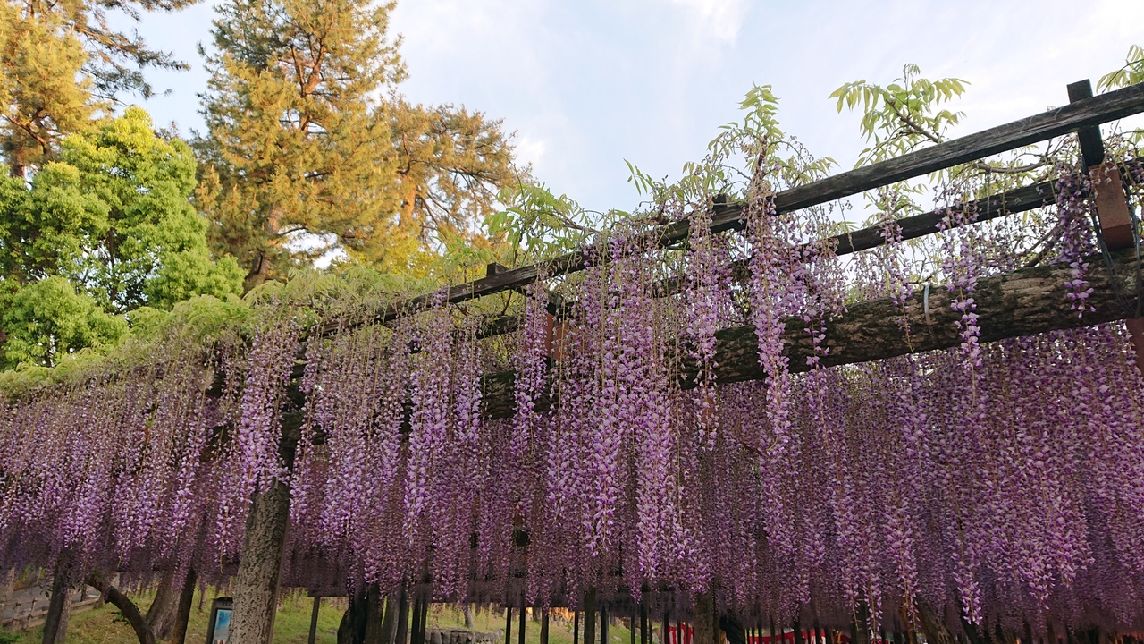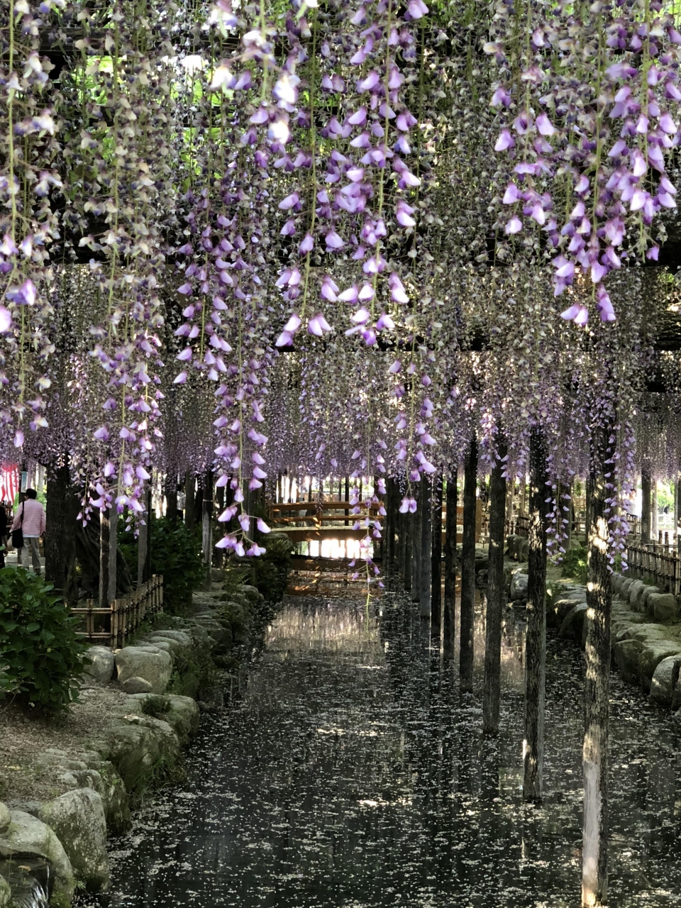 桜、藤、睡蓮などで名高い天王川公園、ゴールデンウィークに藤の花を観賞した
