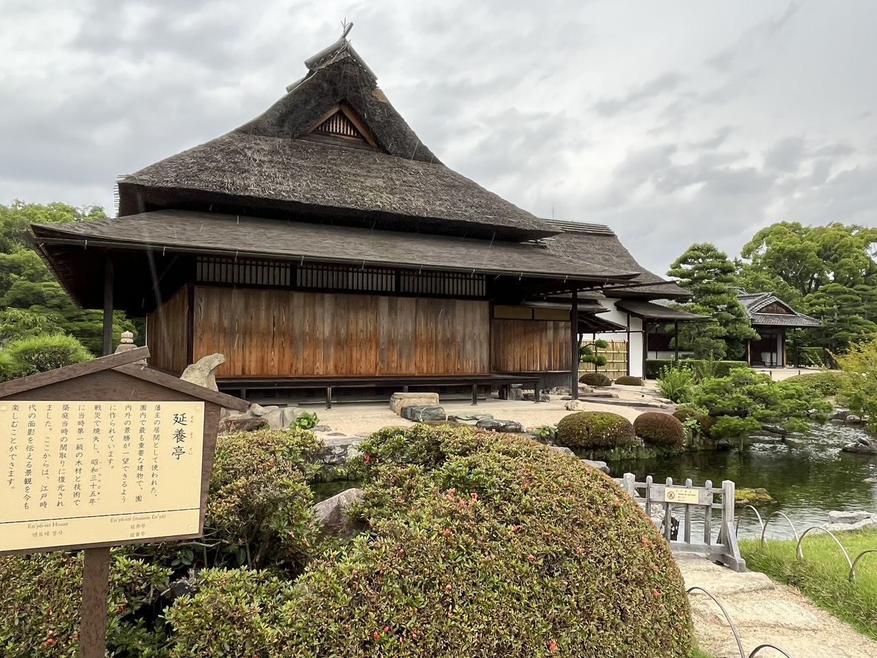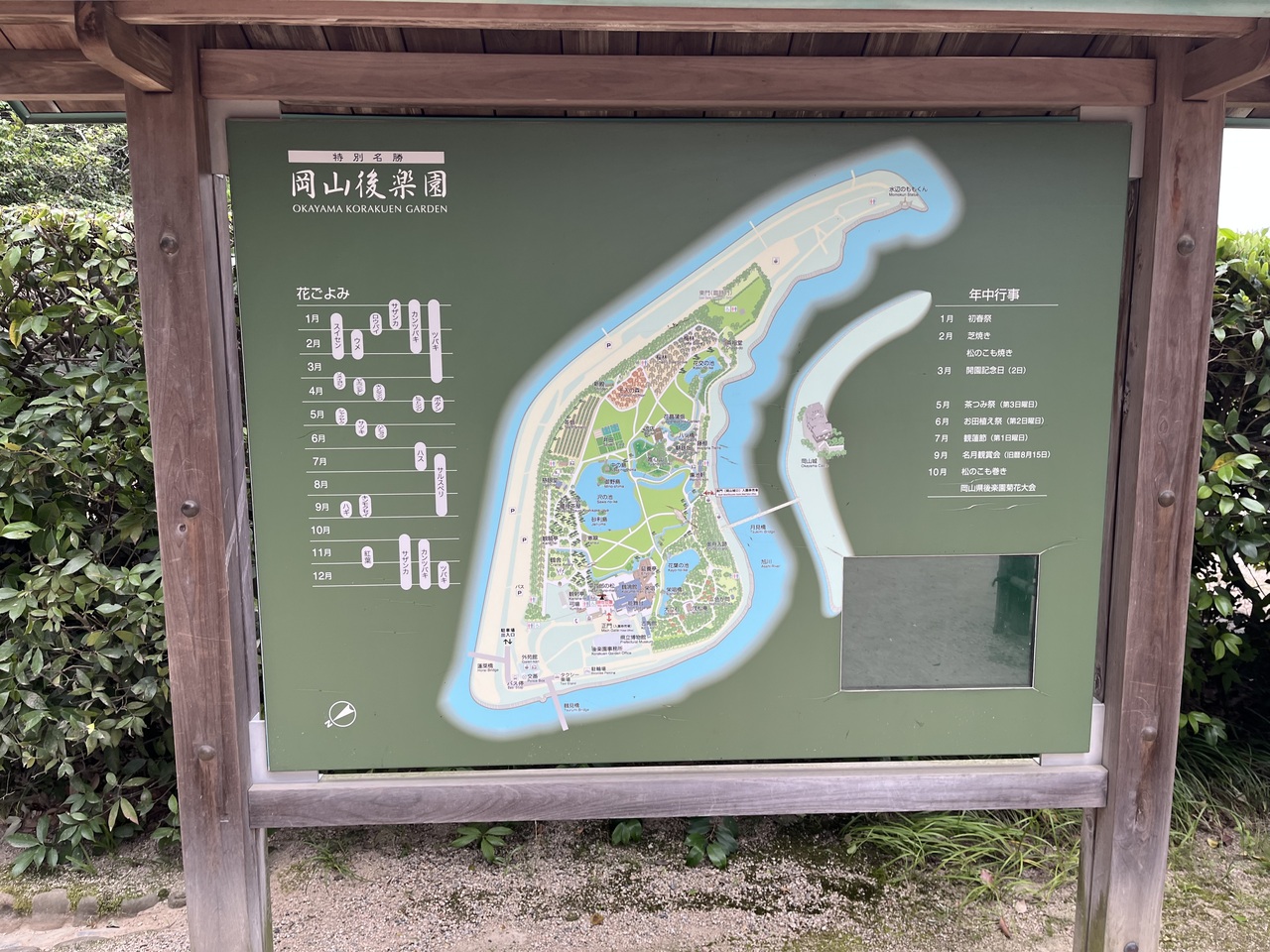 水戸の偕楽園、金沢の兼六園と合わせて日本三名園に数えられる回遊式庭園で、国指定特別名勝となっている。岡山藩主・池田綱政が、家臣の津田永忠を工事監督として築造させたもので、1687年に着工し、1700年にほぼ完成したが、その後何度も模様換えや区域の拡張が行われるなどして、現在の規模までになっている。藩政時代には茶屋屋敷とか後園と呼んだ。明治4年(1871年)に後楽園と改称して一般公開し、同17年(1884年)に県に移譲された。延養亭から東面して望む沢の池と唯心山や、それらを取りまく広々とした芝生などが描きだす平明な景観が眺めの中心ともいえ、操山のなだらかな山容が借景となっている。