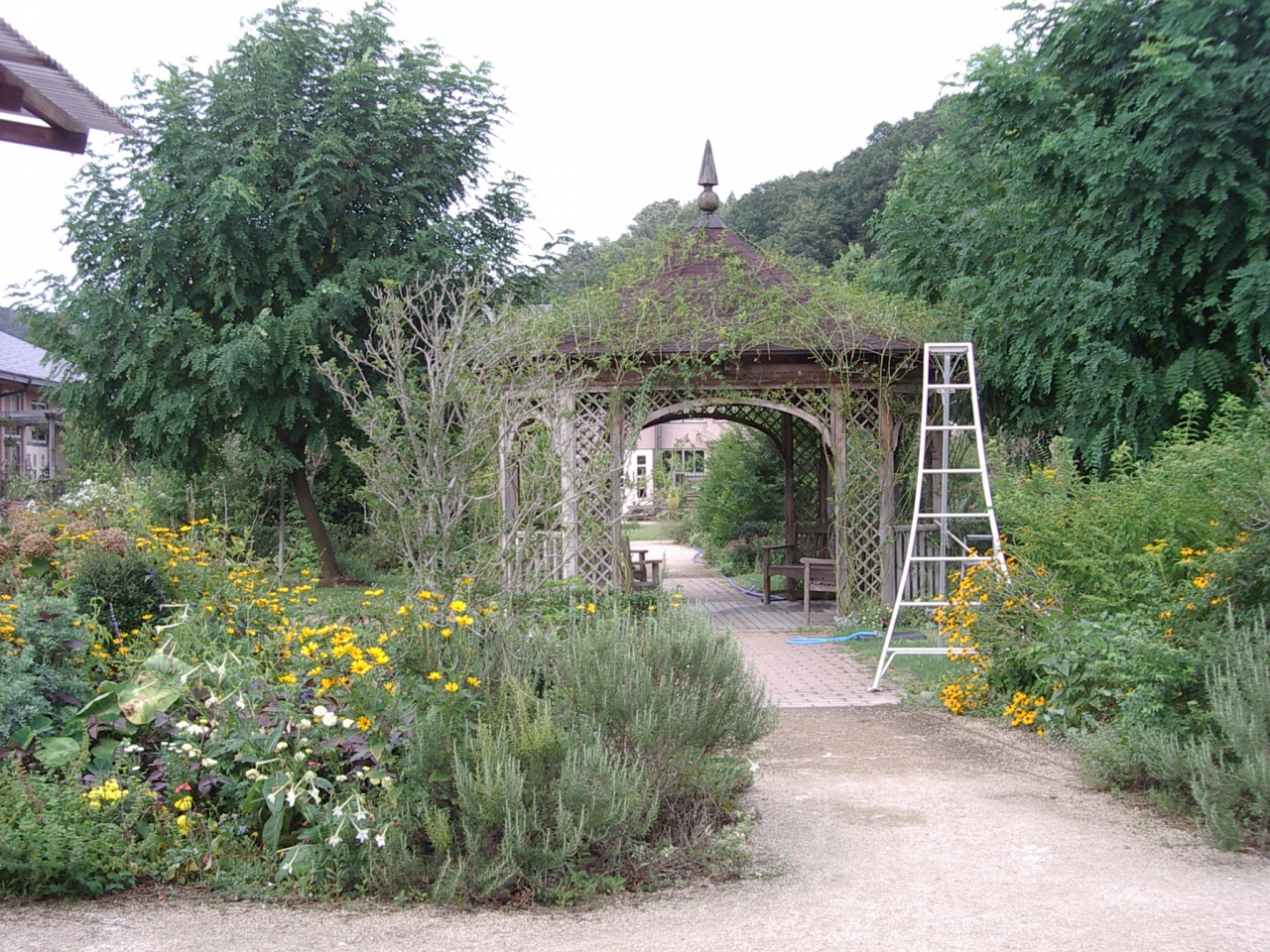水田や畑、農村という純和風の光景の中に広がる英国風庭園だ。廃校になった小学校を活用して2000年に造られた庭園で、英国園... 続きを読む芸の国内パイオニアとして知られるケイ山田氏の設計。バラやハーブなど約350種21000本の草花が四季折々に庭を彩る。校舎・校庭という学校の名残をとどめる一方で、休憩用の西欧風東屋「ガゼボ」やベンチなどはいかにも英国風。こういっては何だが、意外に本格的な英国庭園で、ここまで足を運ぶ価値は十分にある癒やしの空間だ。廃校後は公民館としても活用されており、多目的ホール、陶芸教室、カフェ、レストルーム、さらには地域の愛好会から発展したビリヤード場まである。 閉じる
