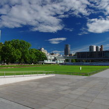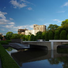 2) 広島駅からバスで15分「平和記念公園」バス停下車、すぐ