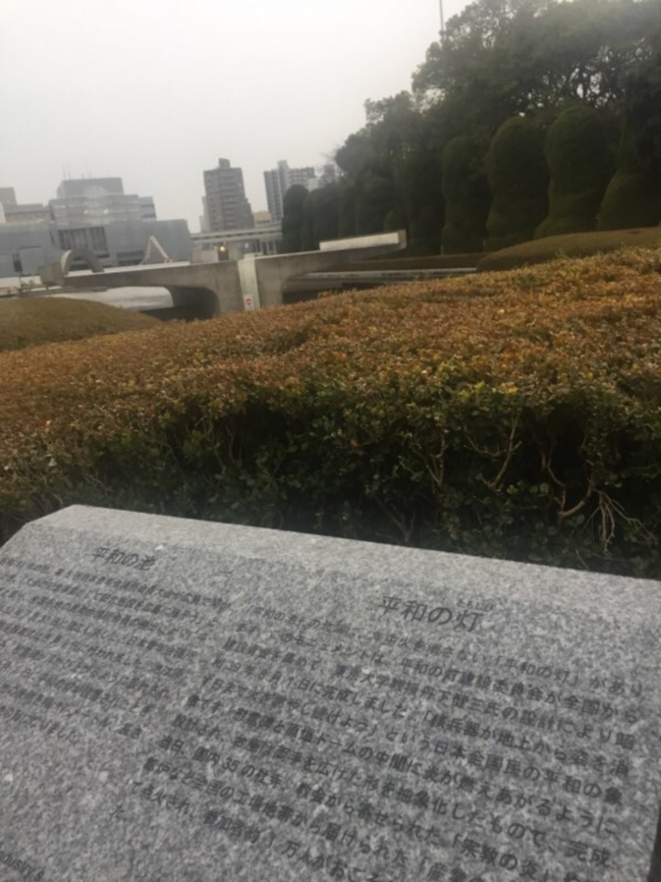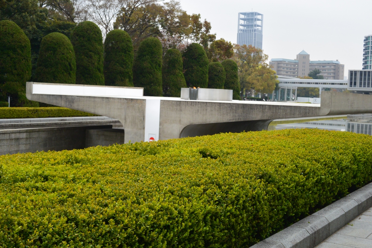 2) 広島駅からバスで15分「平和記念公園」バス停下車、すぐ