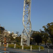 白い鉄塔の上に時計がついていて 目立つのですぐわかります。