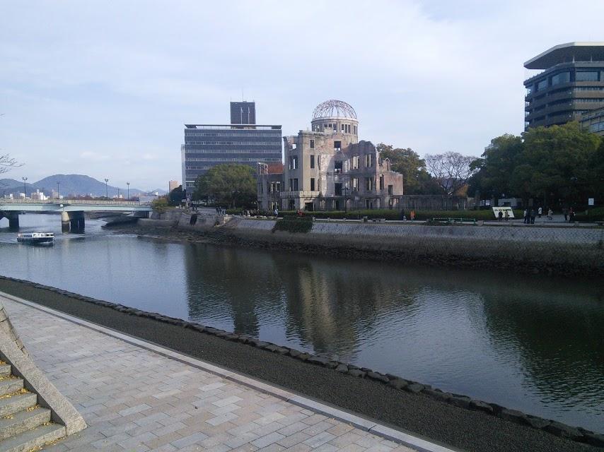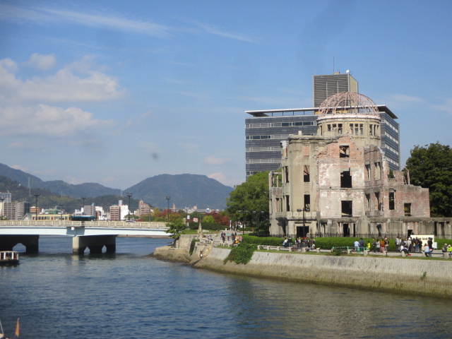 - 1) 広島駅から路面電車で15分「原爆ドーム前」電停下車、すぐ