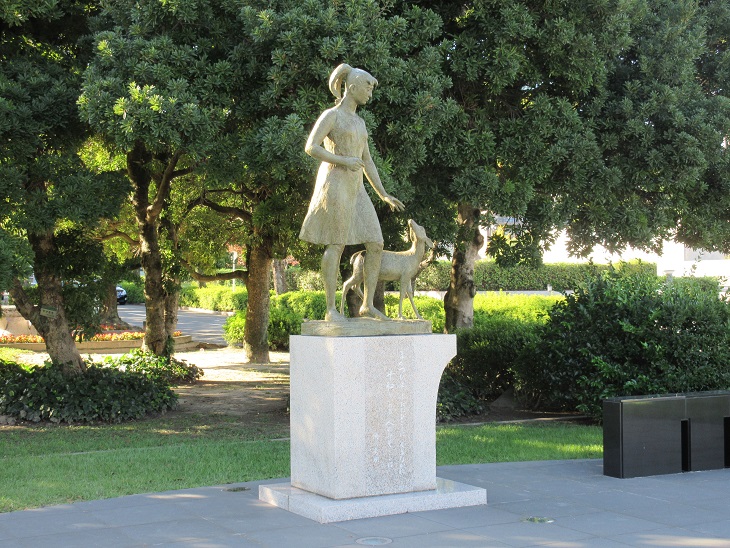朗らかな、まさに平和を謳歌するかのような少女と小鹿の像を通じて、平和の尊さを感じさせる像です。