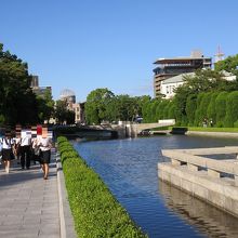 2) 広島駅からバスで15分「平和記念公園」バス停下車、すぐ