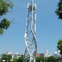 ぐにゃっと曲げた鉄塔の時計塔