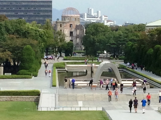 2) 広島駅からバスで15分「平和記念公園」バス停下車、すぐ