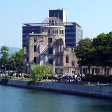 - 1) 広島駅から路面電車で15分「原爆ドーム前」電停下車、すぐ