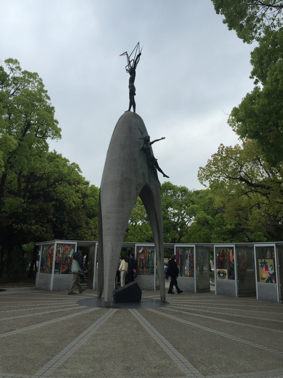 ガラスケースに入れられたたくさんの千羽鶴・折り鶴が捧げられています。2015年4月欧米系外国人のツアーがひっきりなしに訪れてました。