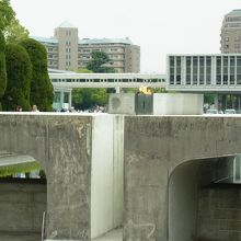 2) 広島駅からバスで15分「平和記念公園」バス停下車、すぐ