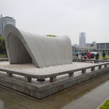 原爆ドーム・平和祈念資料館・平和の灯と一直線上になるよう丹下健三が設計した慰霊碑です