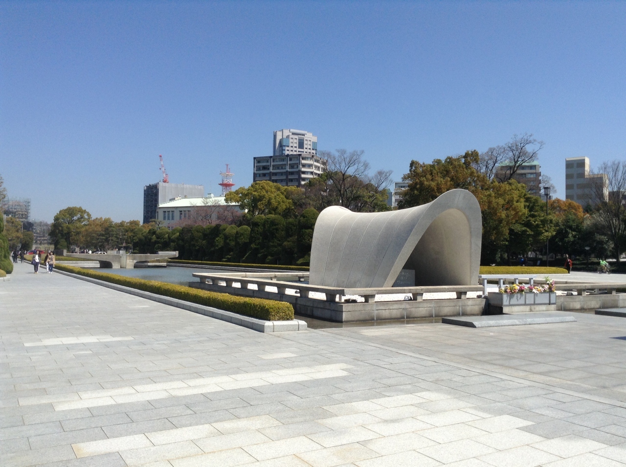 2) 広島駅からバスで15分「平和記念公園」バス停下車、すぐ
