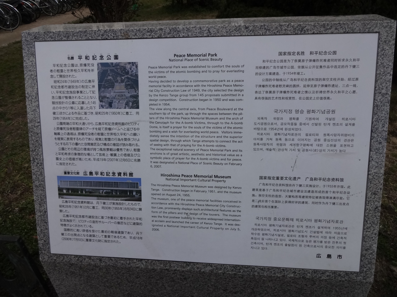 平和記念公園は外国人観光客が多く、現在の「原爆ドーム」は美しい廃墟だが、ここに降り立つと、いつも鳥肌が立ち、目頭が熱くなる... 続きを読む。 平和記念公園は、爆心地に近い旧太田川が元安川と分岐する三角州にあり、原爆死没者の慰霊と世界恒久平和を願う公園。 閉じる