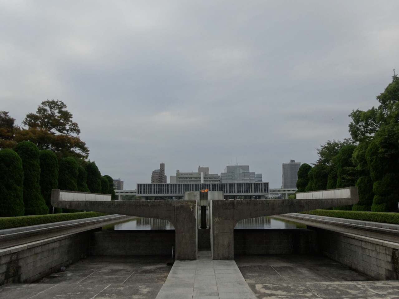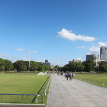 原爆ドームから平和記念資料館を直線でつなぐ公園