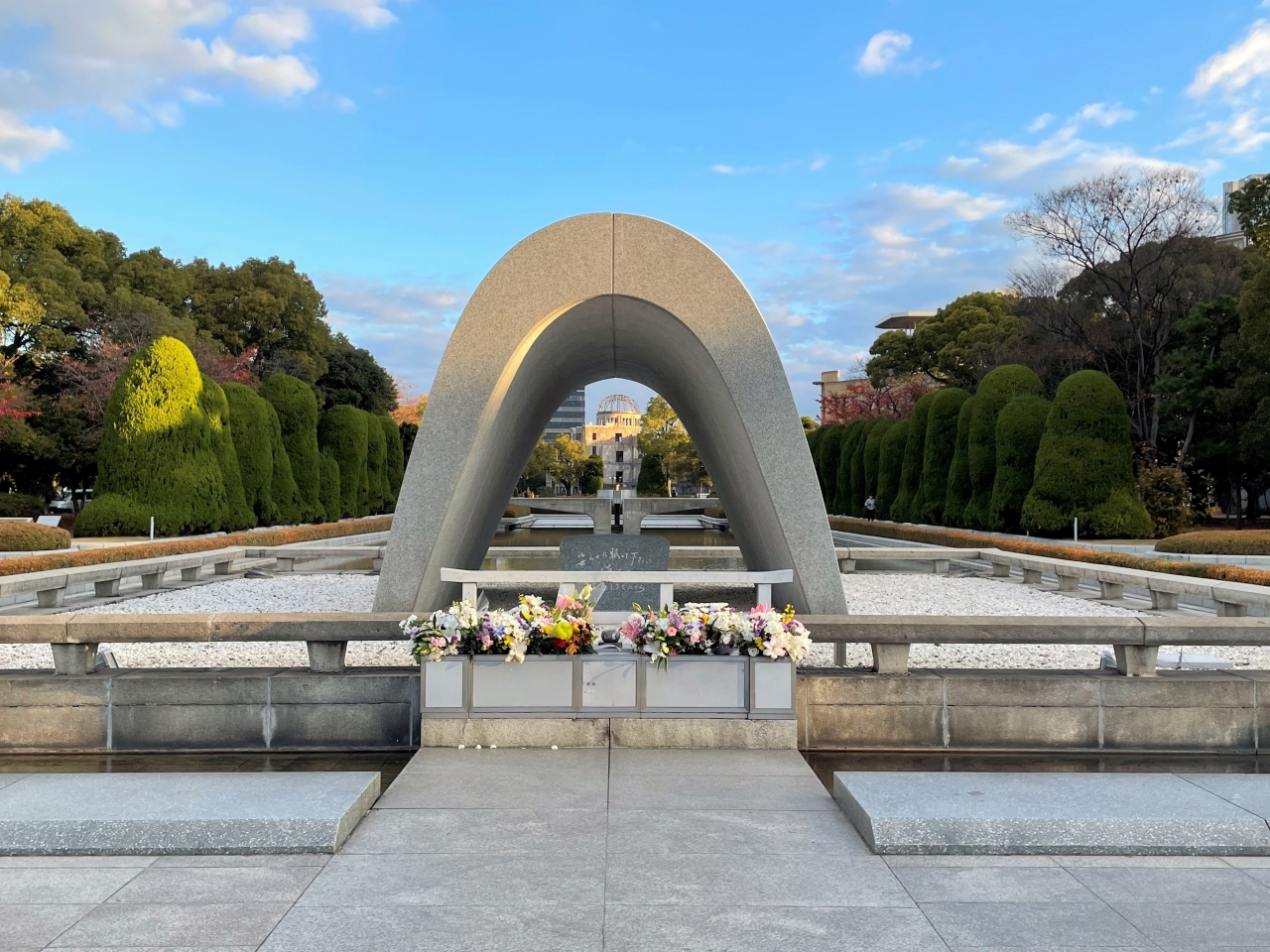 広島旅行において外せないのが平和公園ではないでしょうか。 アクセスは簡単で、広島駅から市電で原爆ドーム前へ行くか、バスで... 続きを読む平和記念資料館前まで行くかが便利ですが、バスで本通りや袋町で降りても歩いていけました。 平和公園に来たならせっかくなので資料館にも入って行ってほしいですが、8月はどうしても混雑しています。冬に来ると空いていたので季節によって全然違うように思います。 夏はその分開館時間も普段より長くなっているみたいなので朝早くにオンライン予約して行ったりするなどの工夫も必要かもしれません。 特に本館への通路がいっぱいになります。本館は暗い、狭いでいつも人が多い状態になっており場所によっては前に進めないような状態になっています。 ひどいときはチケットを購入するために長い列ができていますのでそういう時はオンラインで購入するか、無料で入れるエリアだけ(1階や地下にも少し無料で見られるところがあります)でも是非見ていってください。 ただ写真や絵などショッキングなものもありますので特に繊細な方やお子さんは気を付けてください。 公園の中にはほかにも無料で見学できる施設がいくつかありました。 人ごみに入るのが嫌な人はそういうところで見学されてもいいかもしれません。 またボランティアのガイドさんが公園の中の慰霊碑を案内してくれますので(10時半~2時半まで)時間が合えばこちらもおすすめです。 (ただし熱中症警戒アラートが出ている日はないようです) 私は8月6日に合わせて行ったので、色々なイベントをやっており、被爆者の証言を聞くことができました。生で被爆者の声を聴ける機会はどんどん減っていると思うので貴重な時間をすごすことができました。 閉じる