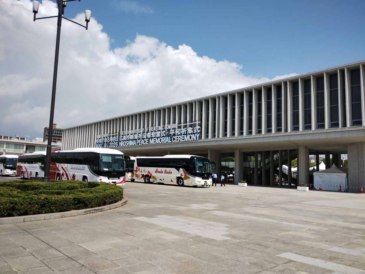 2) 広島駅からバスで15分「平和記念公園」バス停下車、すぐ