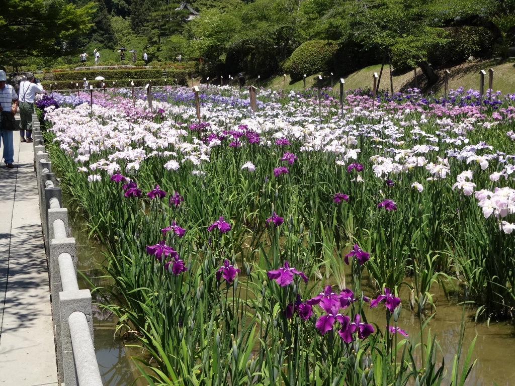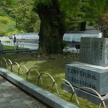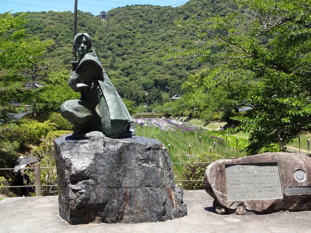 園内の菖蒲園の近くに佐々木小次郎の銅像があります。