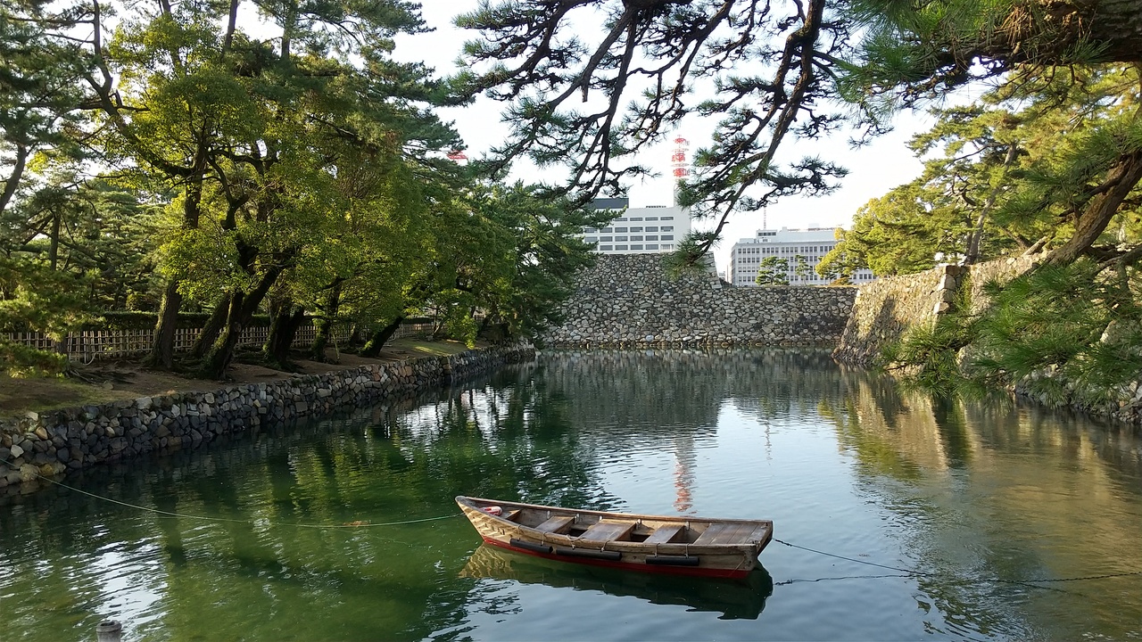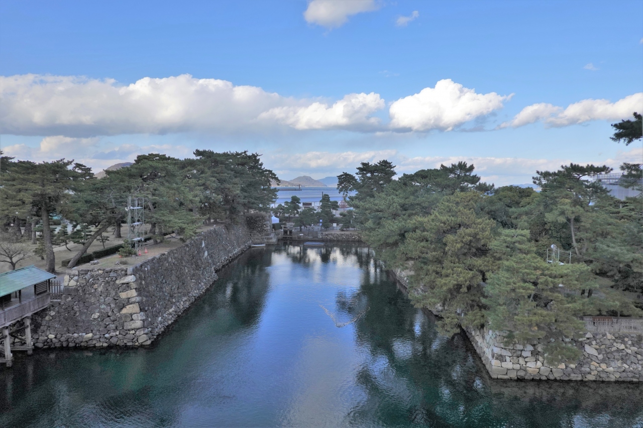 海水を引き込んだお堀のある松の綺麗な高松城跡