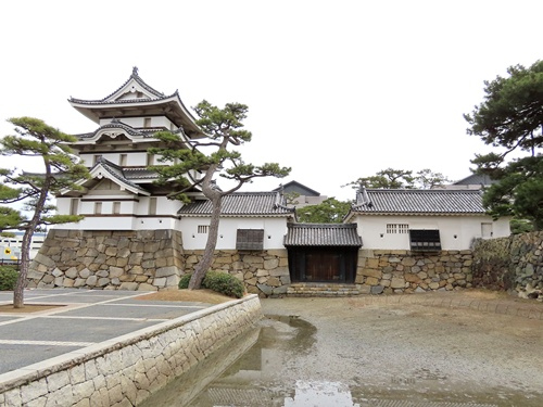 天正16年(1588)、豊臣秀吉の家臣生駒親正によって築城された水城である。生駒氏は親正以降4代54年居城したが、高俊のとき御家騒動が起こり、出羽矢島に転封された。その後、讃岐は高松と丸亀の2藩に分割され、高松城には水戸徳川頼房の子松平頼重が入城、修復増築を施し、12代つづいて明治に至った。3重の月見櫓や、艮櫓、天守跡などに往時の面影が偲ばれ、城跡一帯は玉藻公園として開かれている。園内には3つの築山を中心とする枯山水庭園、披雲閣、松平家家宝の一部を展示した玉藻公園陳列館がある。◎生駒親正(1526-1603)美濃生まれ。武将。織田・豊臣に仕え、賎ヶ獄・小牧山の戦などで軍功を挙げ、近江高島、伊勢神戸、赤穂城主。◎松平頼重(1622-95)水戸生まれ。水戸光圀の同母兄。徳川家康に謁見し常陸下館より高松藩に転封、初代藩主となり民政に力を入れる。西国大の命を受け幕閣からも一目おかれた。◎松平頼寿(1874-1944)高松藩松平家12代当主。井伊直弼の孫。貴族院議長となる。その間、県教育会会長、日銀監事、大日本図書館総裁、日本競馬会会頭を務める。