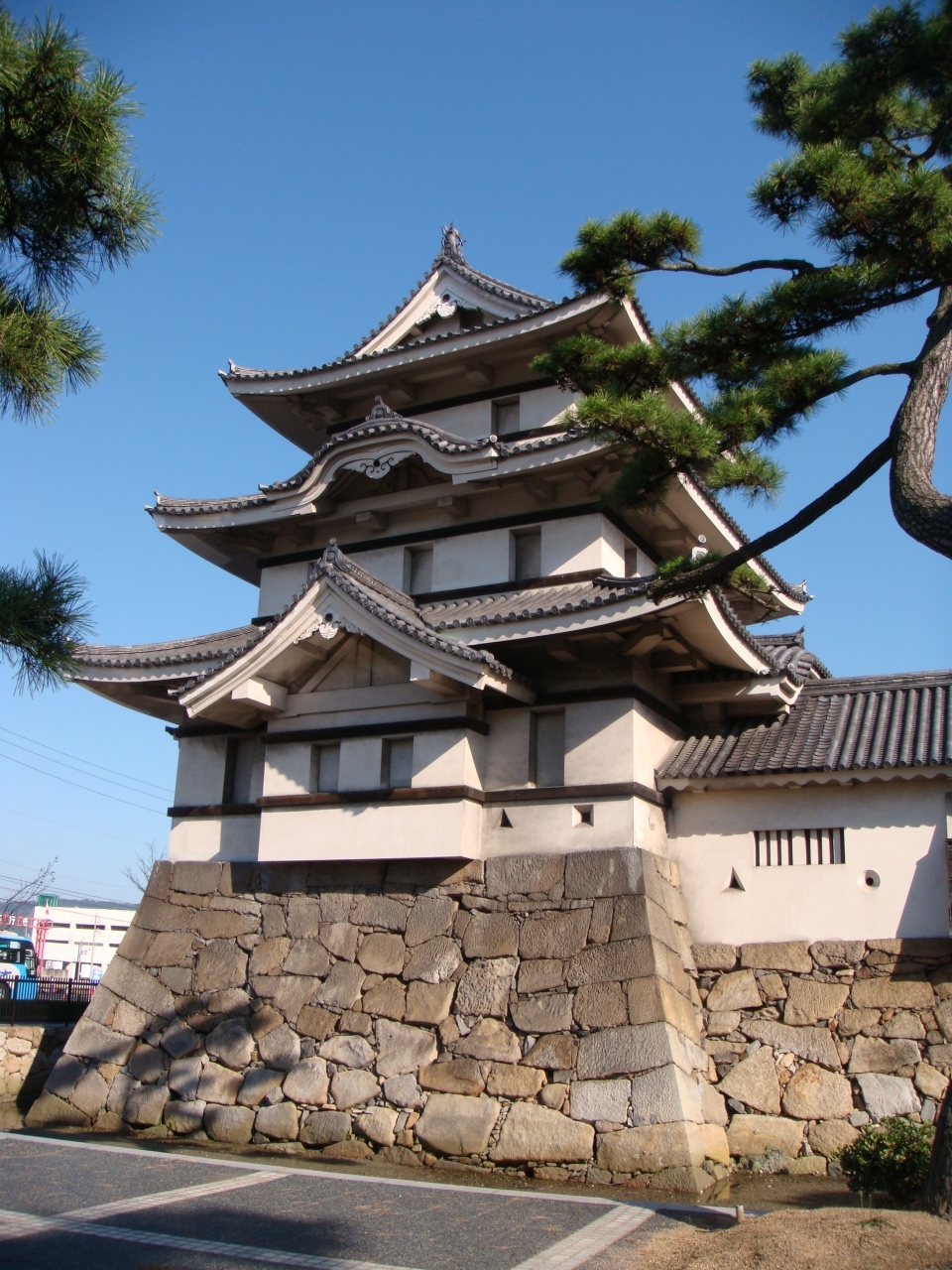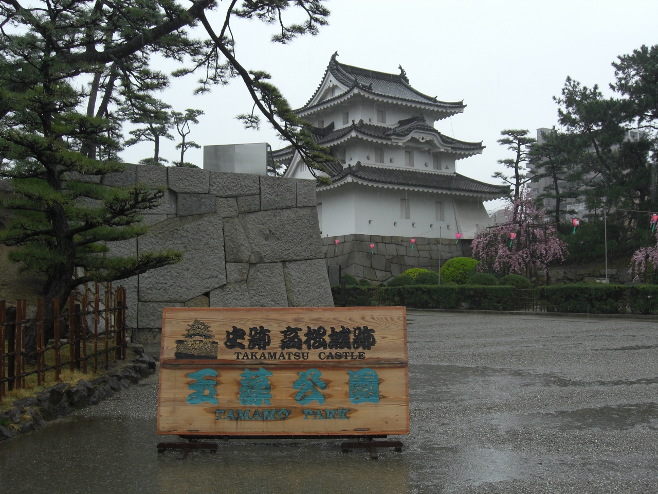 天正16年(1588)、豊臣秀吉の家臣生駒親正によって築城された水城である。生駒氏は親正以降4代54年居城したが、高俊のとき御家騒動が起こり、出羽矢島に転封された。その後、讃岐は高松と丸亀の2藩に分割され、高松城には水戸徳川頼房の子松平頼重が入城、修復増築を施し、12代つづいて明治に至った。3重の月見櫓や、艮櫓、天守跡などに往時の面影が偲ばれ、城跡一帯は玉藻公園として開かれている。園内には3つの築山を中心とする枯山水庭園、披雲閣、松平家家宝の一部を展示した玉藻公園陳列館がある。◎生駒親正(1526-1603)美濃生まれ。武将。織田・豊臣に仕え、賎ヶ獄・小牧山の戦などで軍功を挙げ、近江高島、伊勢神戸、赤穂城主。◎松平頼重(1622-95)水戸生まれ。水戸光圀の同母兄。徳川家康に謁見し常陸下館より高松藩に転封、初代藩主となり民政に力を入れる。西国大の命を受け幕閣からも一目おかれた。◎松平頼寿(1874-1944)高松藩松平家12代当主。井伊直弼の孫。貴族院議長となる。その間、県教育会会長、日銀監事、大日本図書館総裁、日本競馬会会頭を務める。