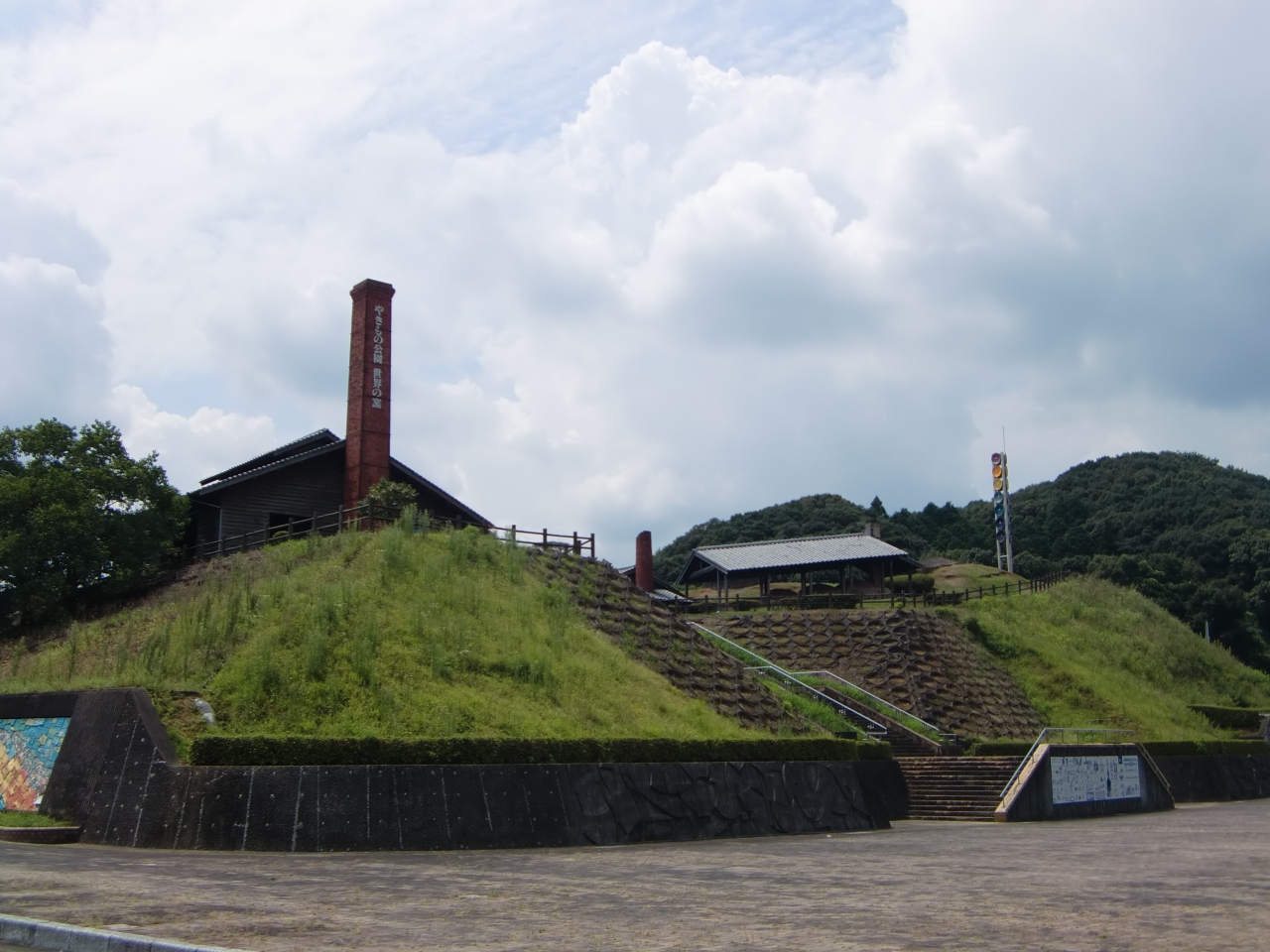 陶芸の館に隣接しており、焼物といえば普通はお皿等と思いますが、こちらは焼き物が生み出される「窯」がテーマの公園のようで、施設内には、古代から近世にかけての世界を代表する窯12基を再現した、世界でも珍しい野外博物館「世界の窯広場」があります。