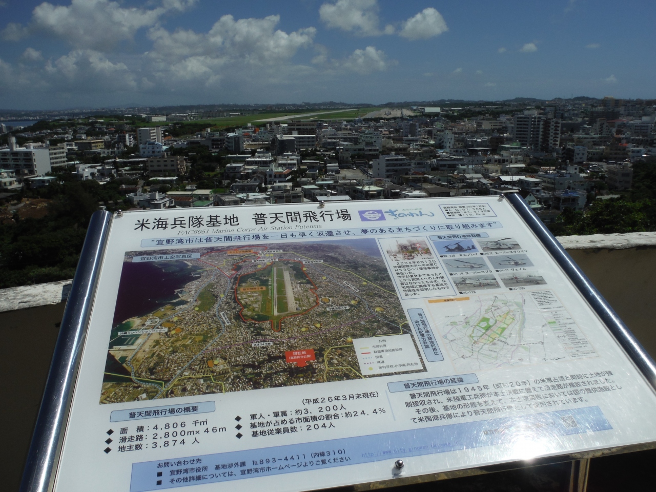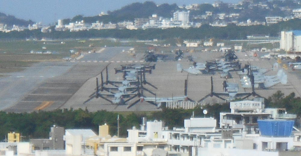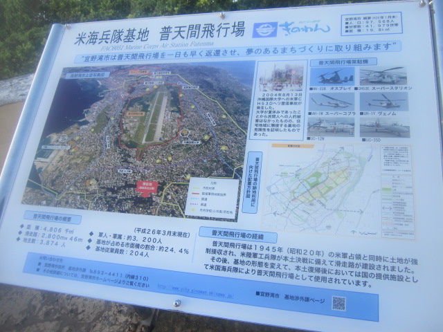 その絶景の景色の中に普天間基地にオスプレイが駐機している光景や宜野湾市住宅街の様子、東シナ海などを望むことができました。