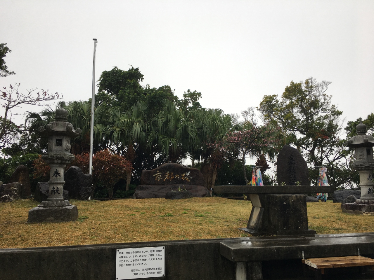 沖縄戦序盤の激戦地として知られる嘉数には、今風に言うところの”ダーク・ツーリズム”的な見応えのあるスポットが色々とあります... 続きを読むが、ここもその一つです。嘉数高台公園には地球を模した形の展望台がありますが、その横のスペースに幾つかの慰霊塔と並んで設置されています。正直、京都に所縁を持つ自分としては、嘉数の戦闘で、京都の方々が多数亡くなられたことを知らなかったので、とても恥ずかしい気持ちになりながら、静かに合掌させて頂きました。ここのすぐ向かいには、戦後の嘉数が公園として整備されるまで、寂しげに放置されたままだったというトーチカもありますので、併せてご覧になられると良いです。 閉じる